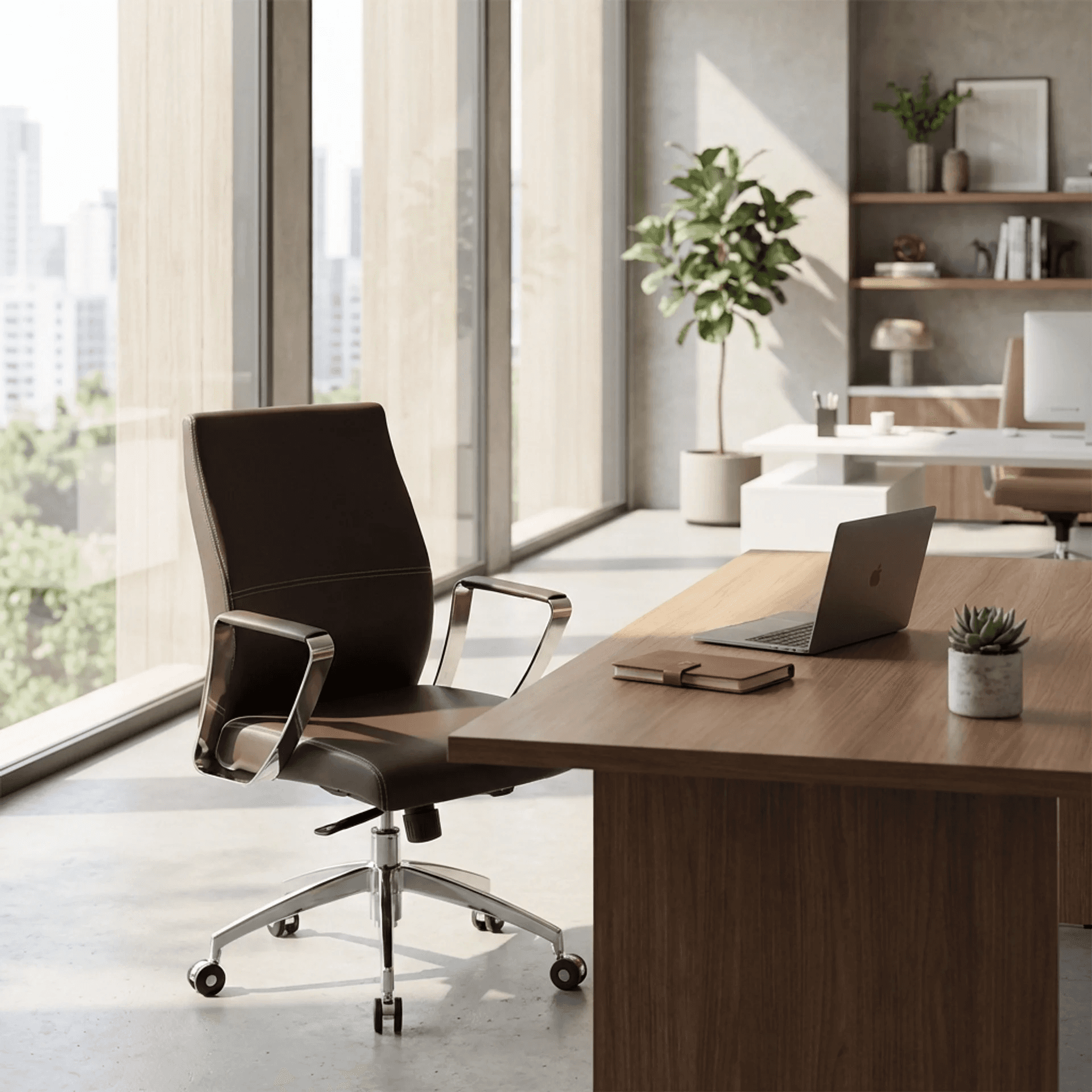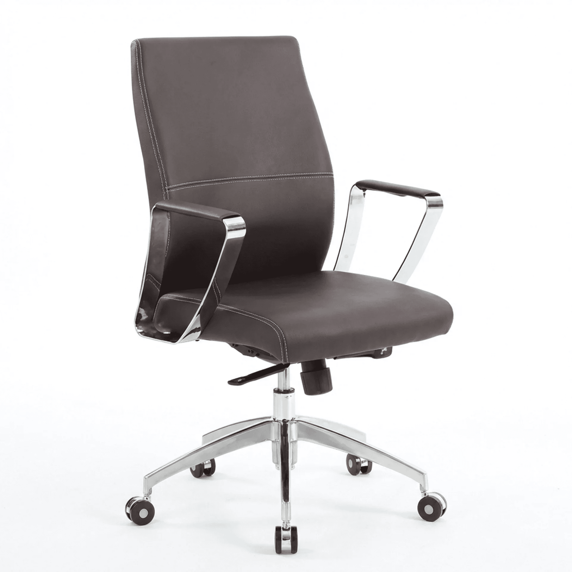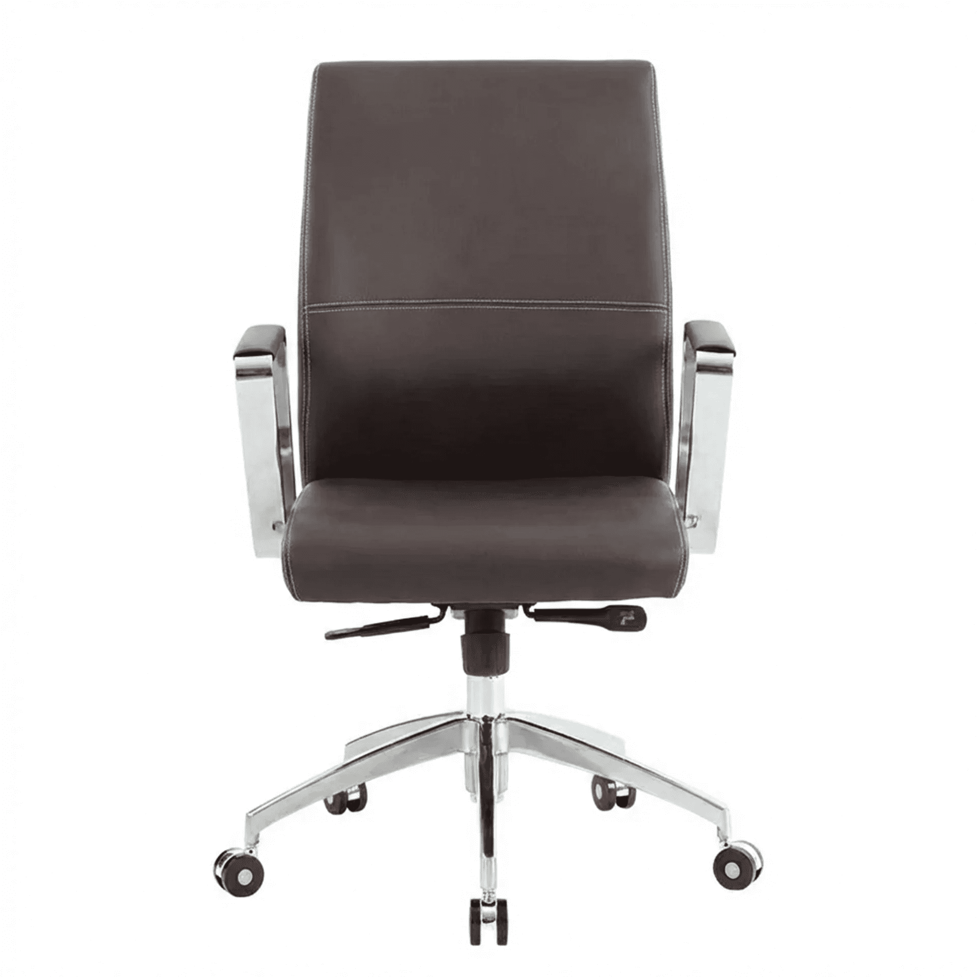 Silla con respaldo triplay de 5 capas y tapizado en vinil. Sistema reclinable con bloqueo y brazos ergonómicos.