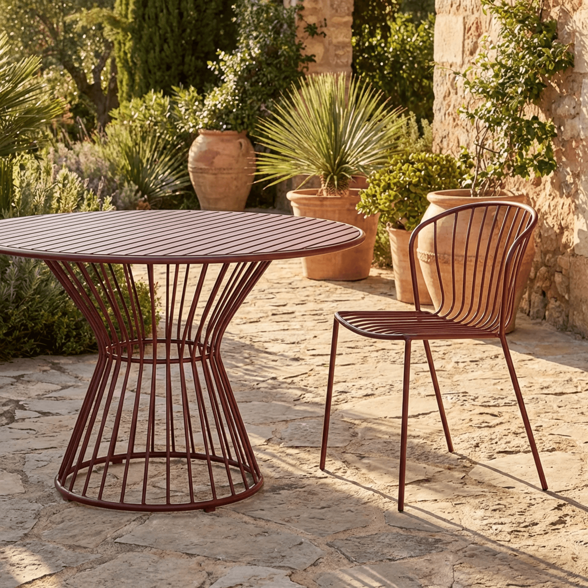 Silla sin brazos de exterior con líneas clásicas y elegantes.