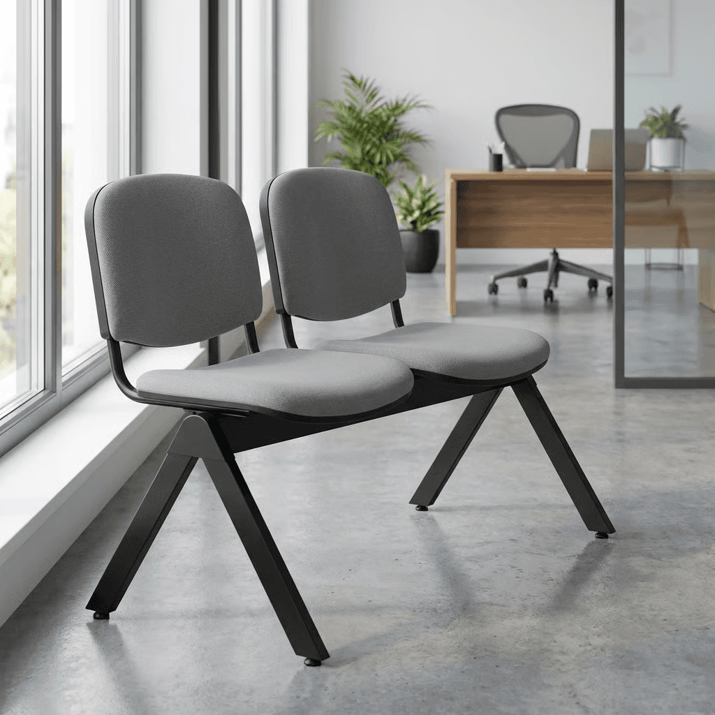 Estructura: Acero tubular rectangular de 1 1/2" X 3", calibre 16. Asientos y respaldos de perfil redondo tubular de acero ponchado con travesaños separadores tubulares redondos de acero, con acabado de pintura epóxica (electrostática) color negro mate.1 Respaldo y Asiento: Hule espuma laminado flexible con densidad en el respaldo de 22 kgs/m3 y de 24 kgs/m3 en el asiento, con alta resiliencia.23 Tapiz: Tapizada al color de elección del cliente de toda su colección de tapices. Resistencia: Peso sugerido 200 kgs.