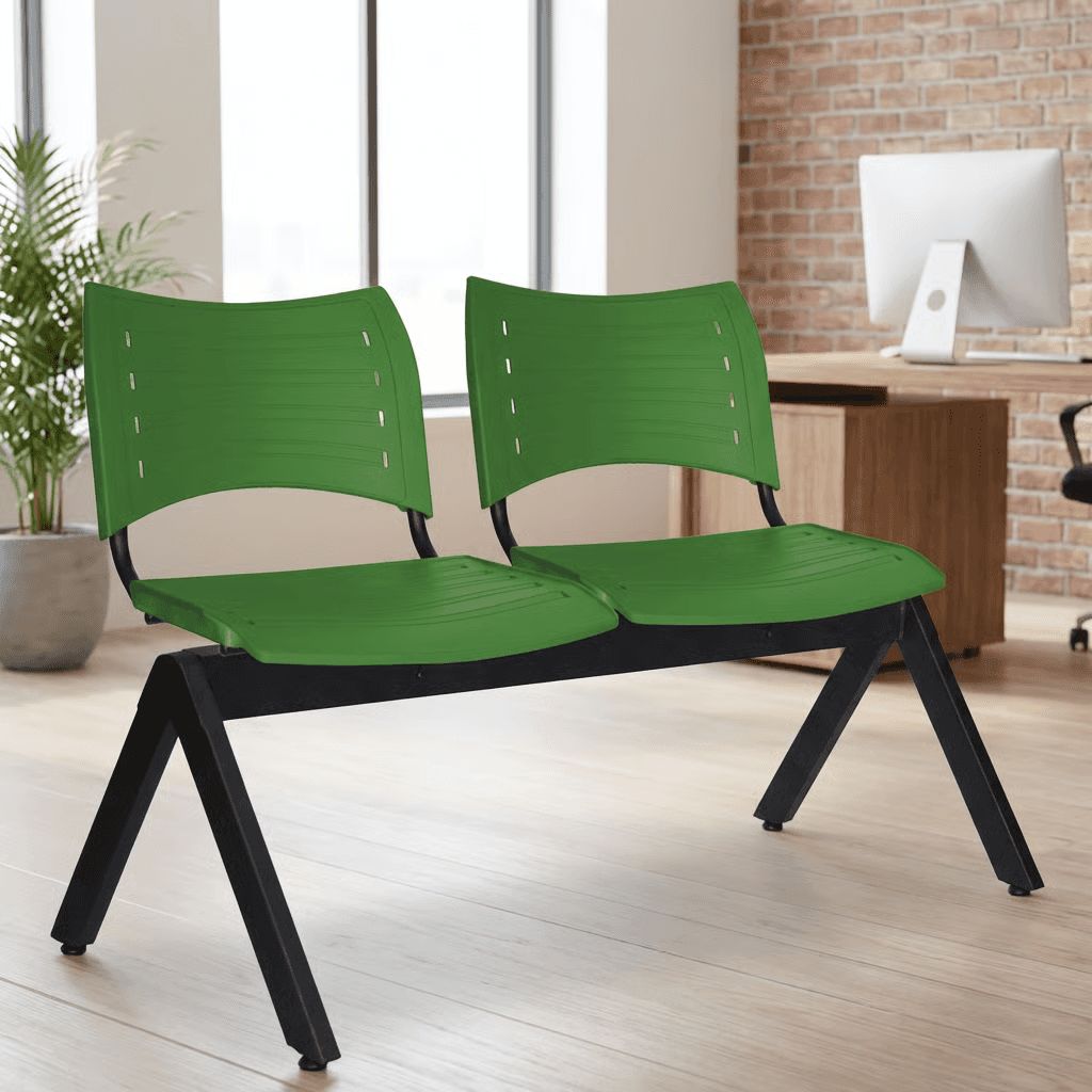 Estructura: De acero tubular rectangular de 1 1/2" X 3", calibre 16. Asientos y respaldos de perfil redondo tubular ponchado de acero con travesaños separadores tubulares redondos de acero, con acabado de pintura epóxica (electrostática) color negro.234567 Respaldo y Asiento: En dos piezas de polipropileno de alta resistencia y duración.89 Color: Blanco, gris, gris cálido, negro, verde, azul, berenjena, rojo y naranja. Resistencia: Peso sugerido 200 kgs.