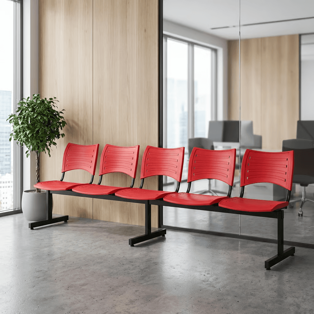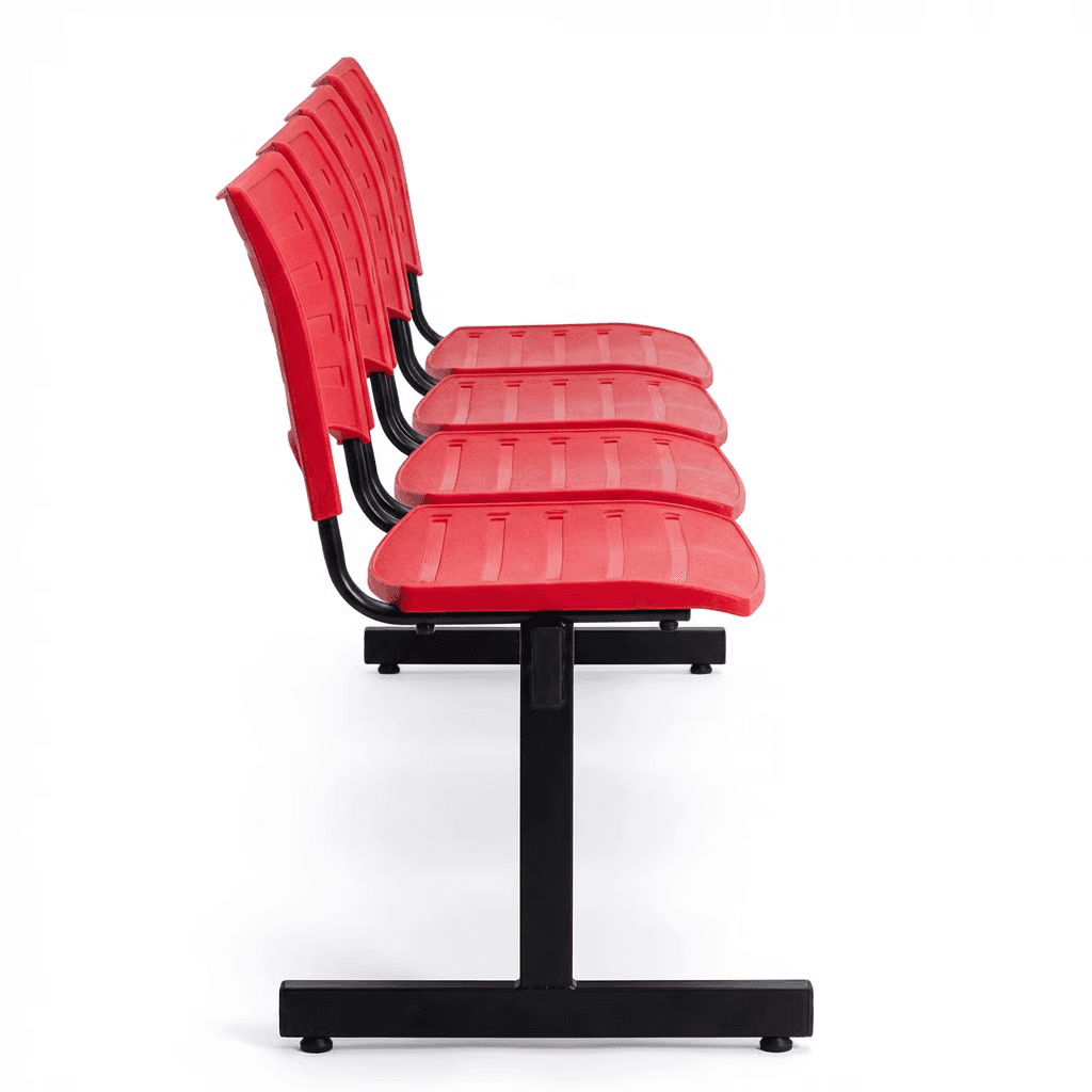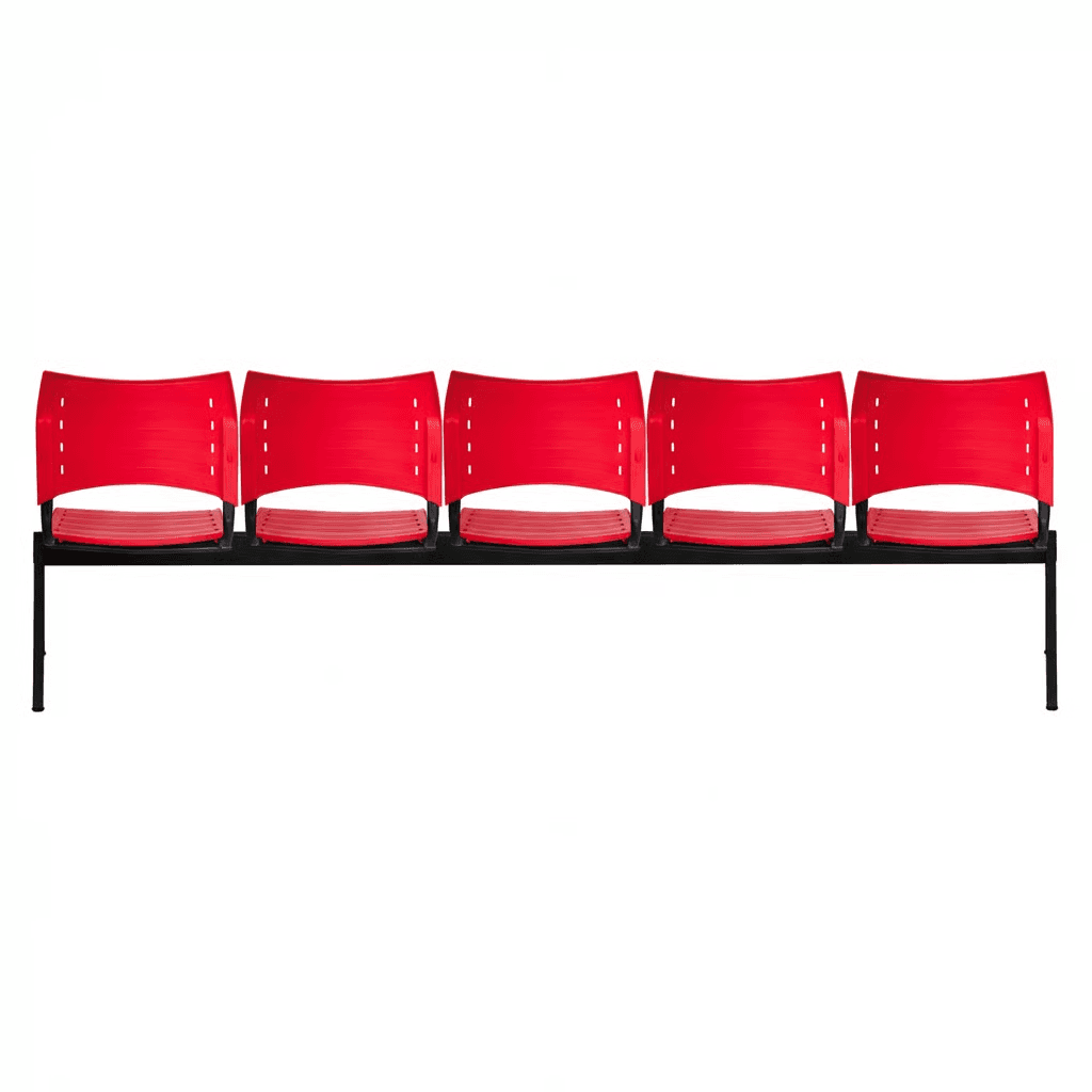Estructura: Acero tubular rectangular de 1 1/2" X 3", calibre 16. Asientos y respaldos de perfil redondo tubular ponchado de acero con travesaños separadores tubulares redondos de acero, con acabado de pintura epóxica (electrostática) color negro.1 Respaldo y Asiento: En dos piezas de polipropileno de alta resistencia y duración.23 Color: Blanco, gris, gris cálido, negro, verde, azul, berenjena, rojo y naranja. Resistencia: Peso sugerido 450 kgs.