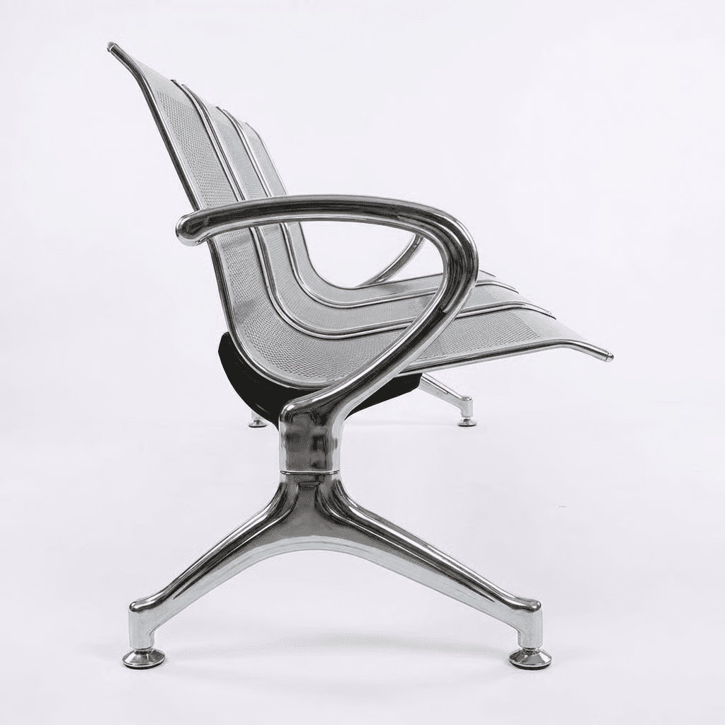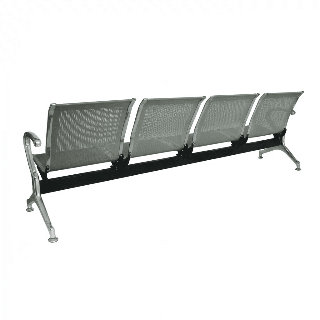 Estructura: Travesaño de acero tubular rectangular de 1 1/2" X 3 1/8”, calibre 14, con acabado de pintura epóxica (electrostática) color negro mate. Patas y base de las patas de lámina de acero troquelada, calibre 16; contiene niveladores. Terminado en cromo.1 Asiento y Respaldo: De lámina de acero troquelada perforada, calibre 16; con acabado de pintura epóxica (electrostática) color gris olivo. Ensamblado en bastidor de acero tubular rectangular.23 Color: Gris olivo. Resistencia: Peso sugerido 612 kgs. (153 Kgs. X plaza)
