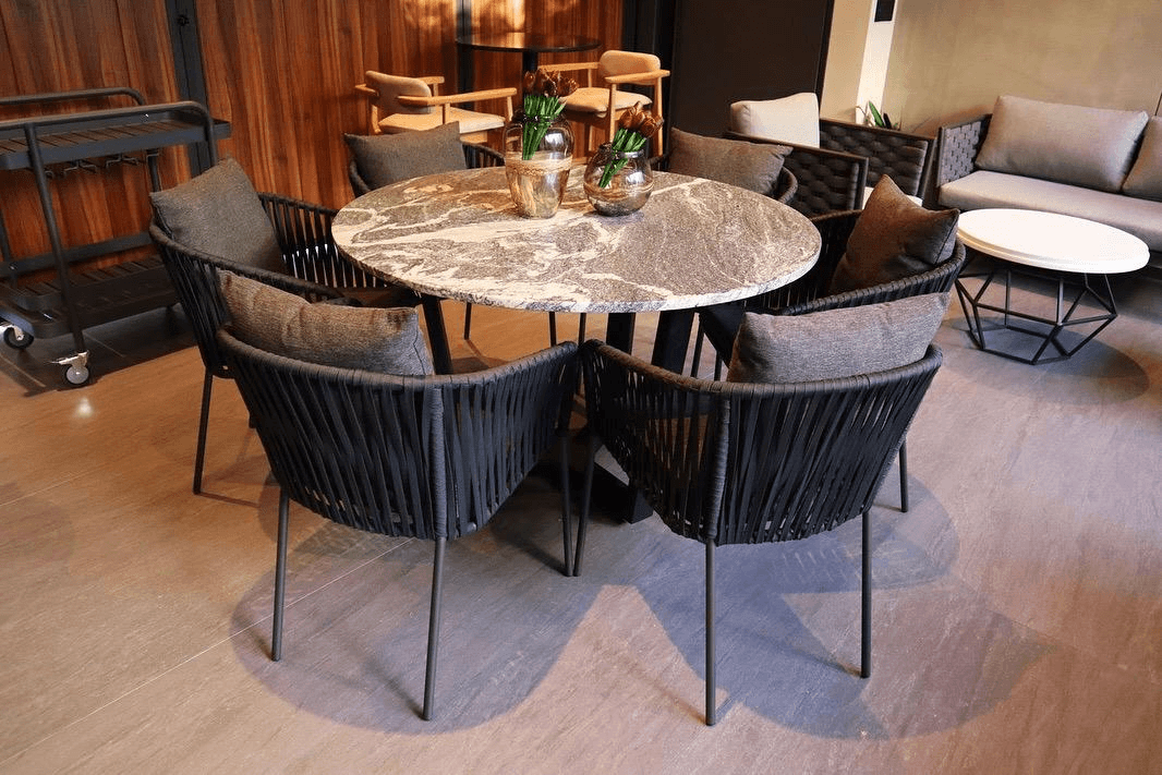 Silla para exteriores fabricado en cordon de nylon plano.