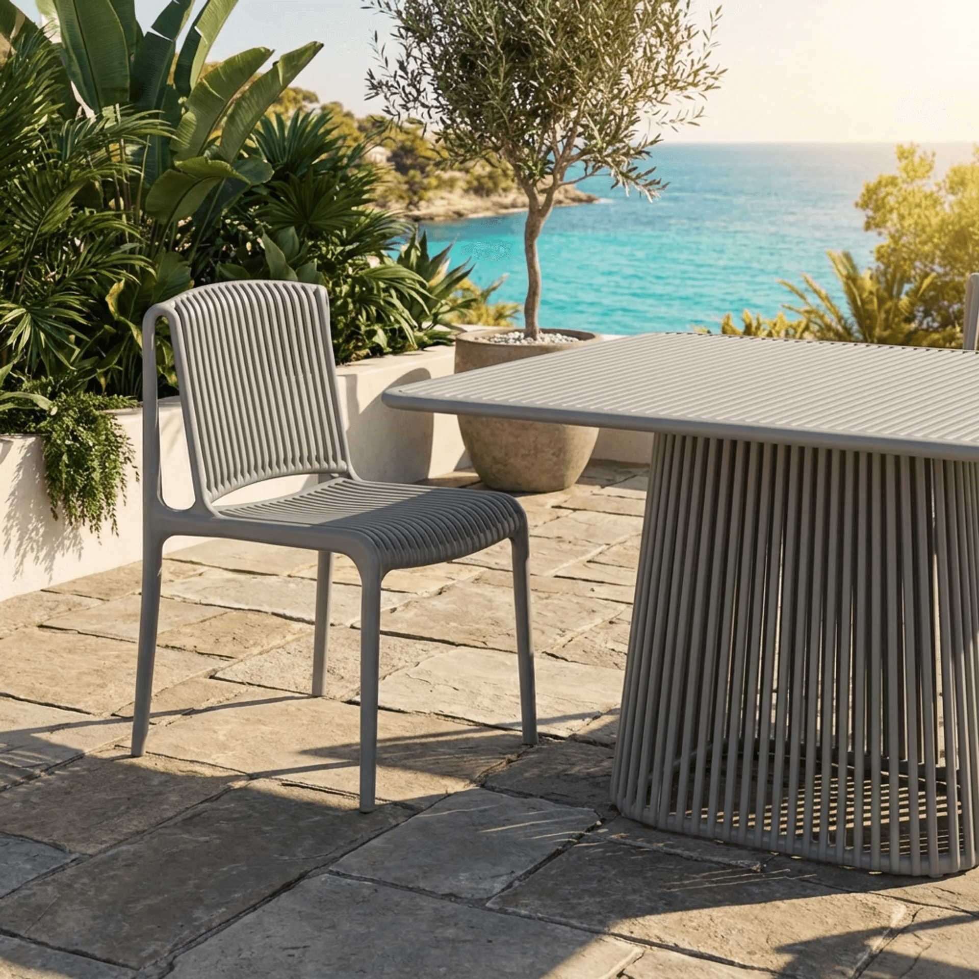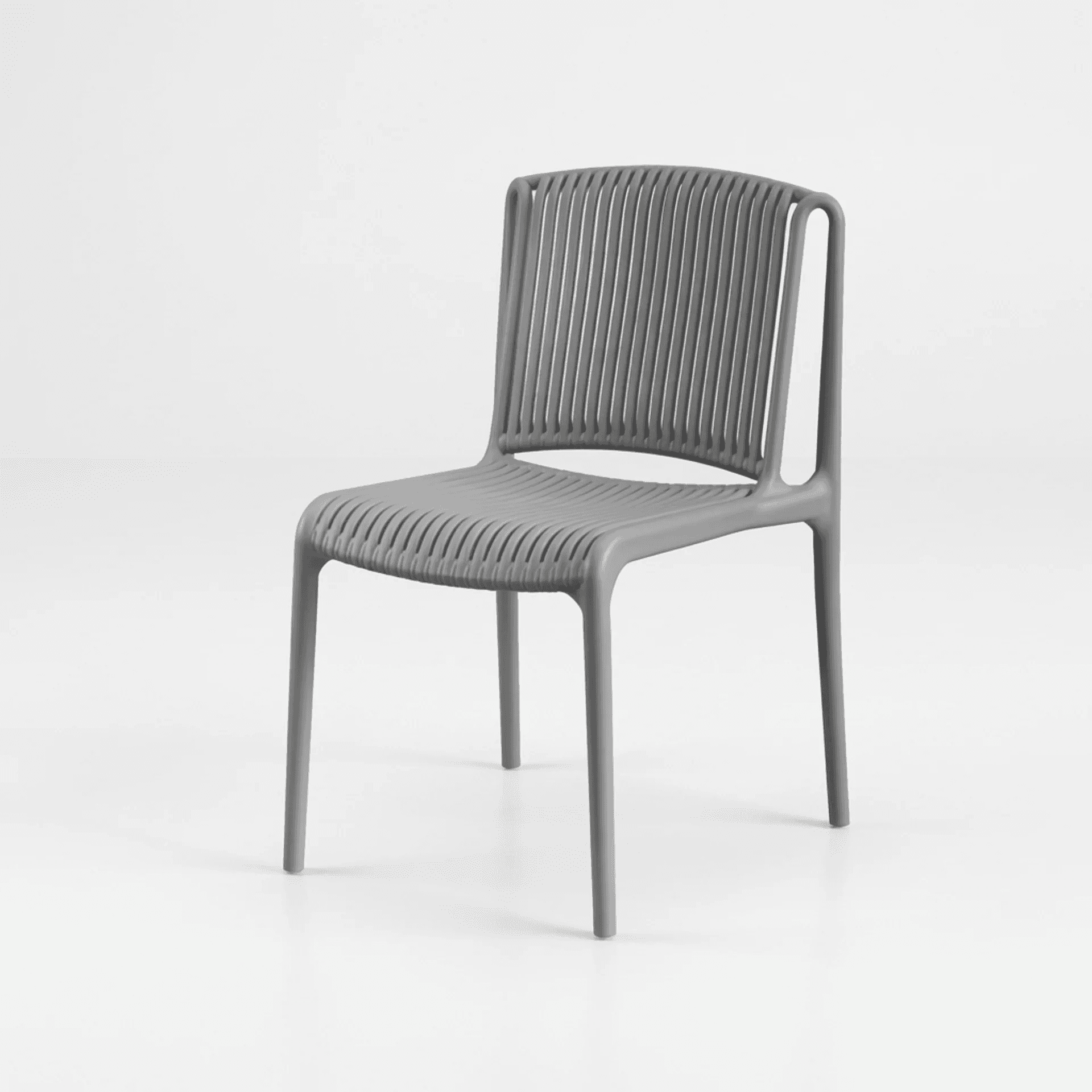 Silla apta para exterior con estructura de polipropileno, con filtro UV y fabricado con polipropileno reciclado.