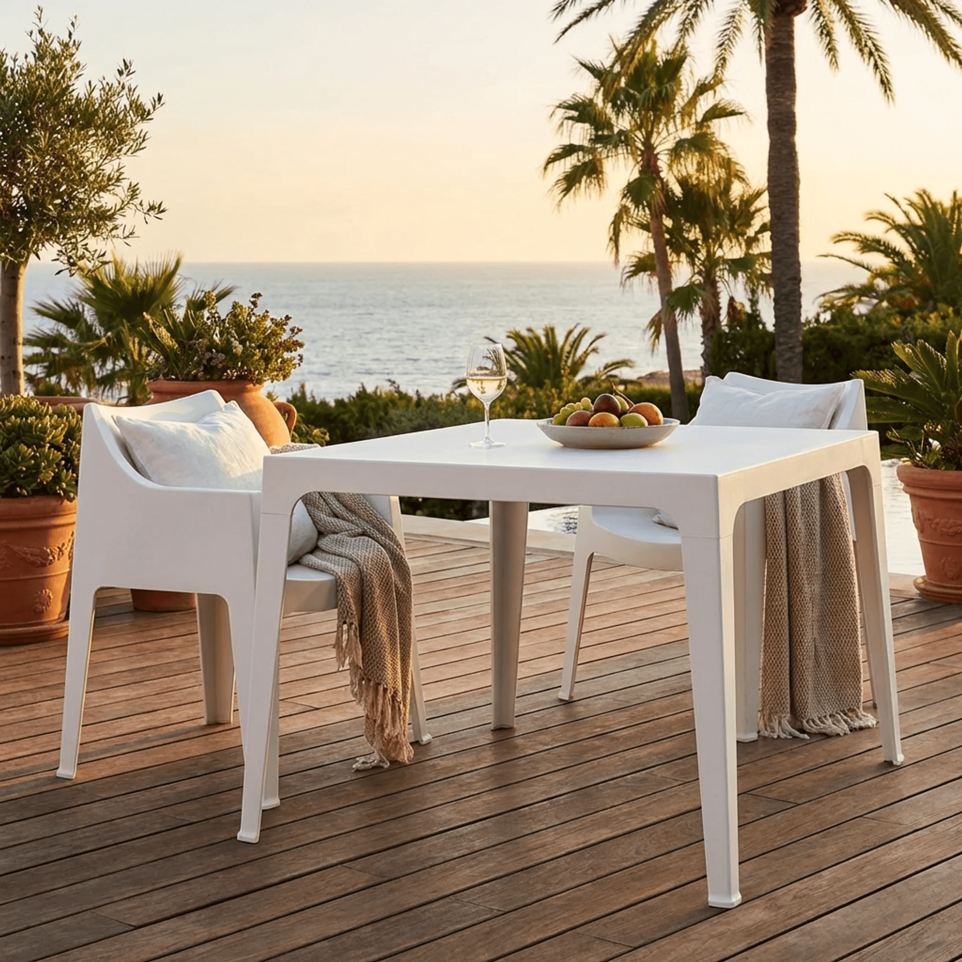 Sillón apilable en tecnopolímero de gran resistencia y estabilidad, es perfecto para el contract y para el exterior.