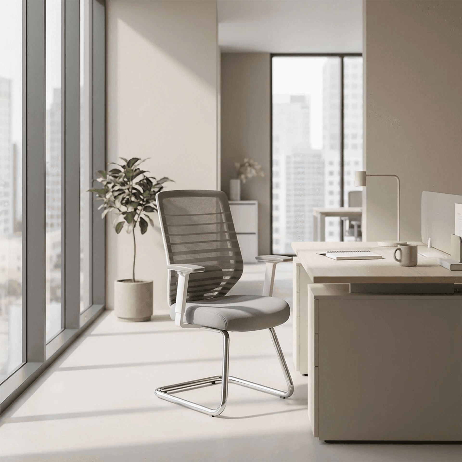 Silla equipada con descansabrazos ajustables en altura y respaldo ergonómico.
