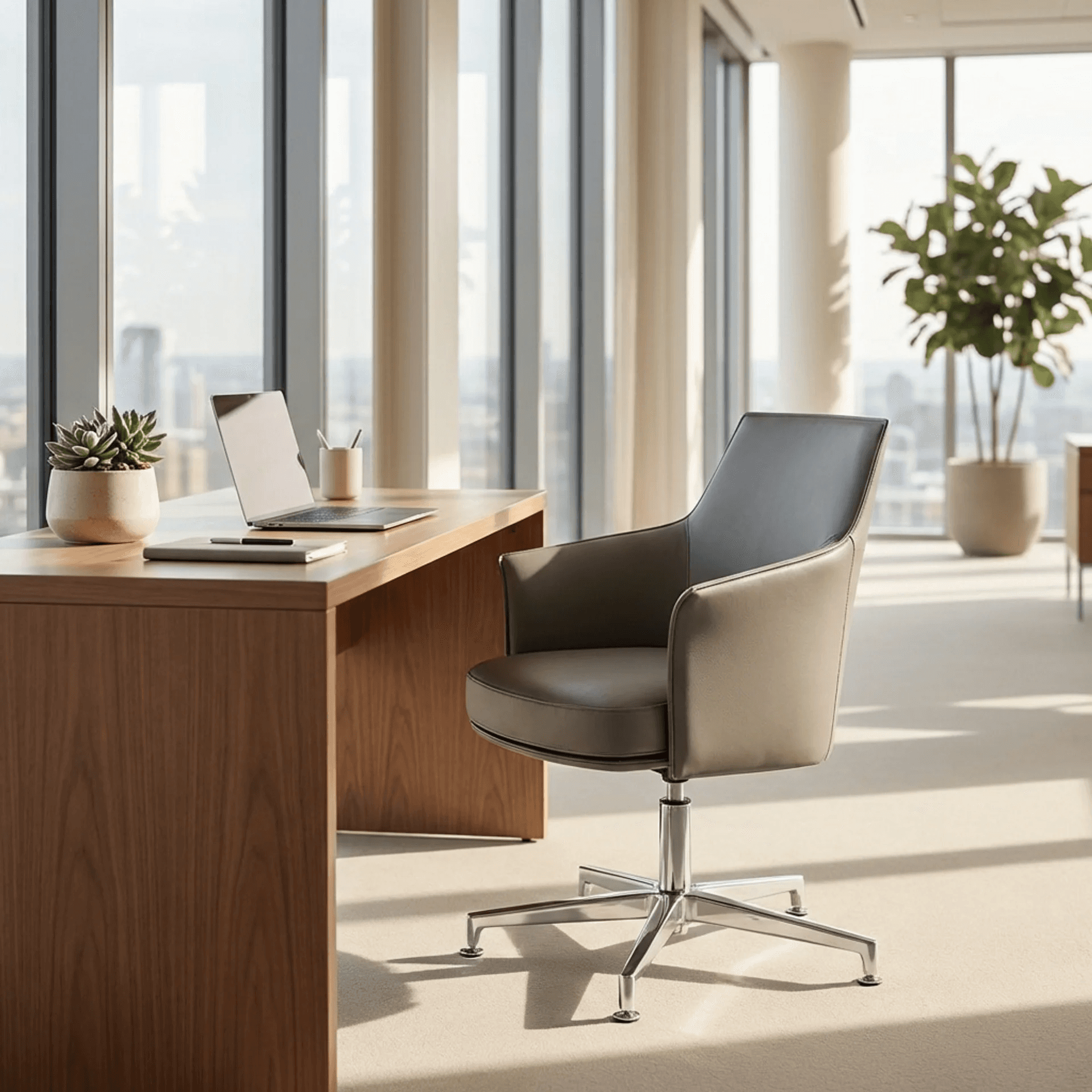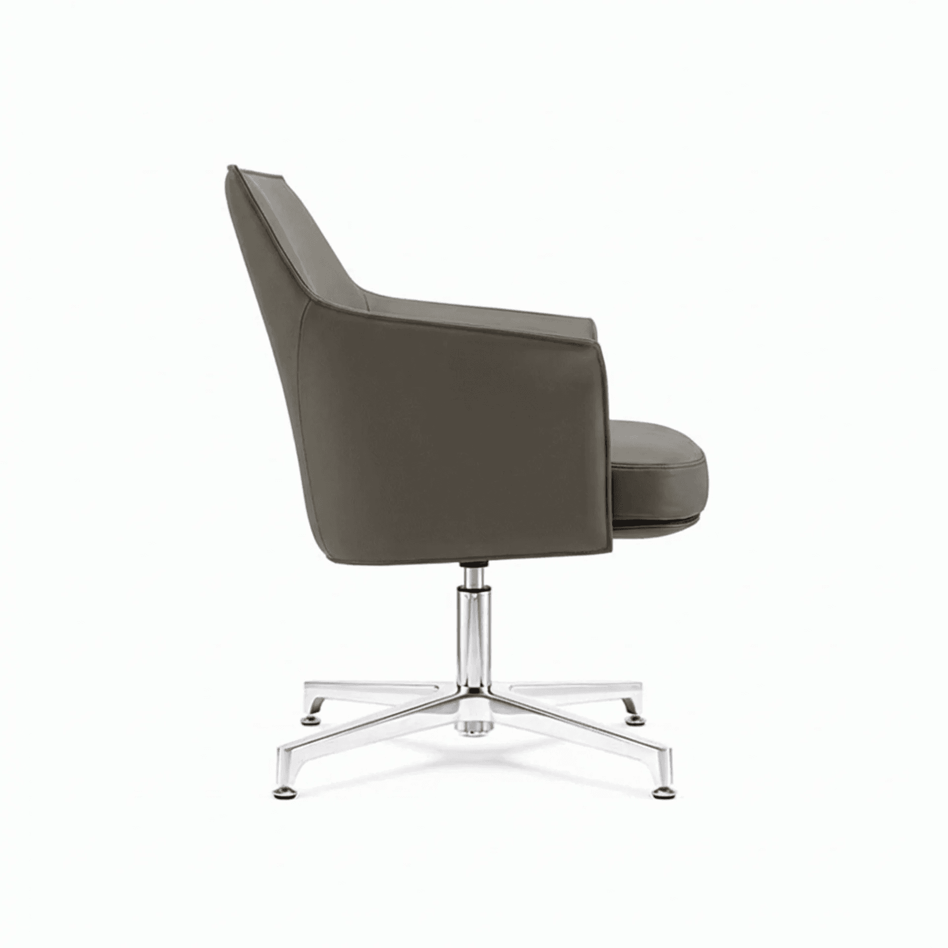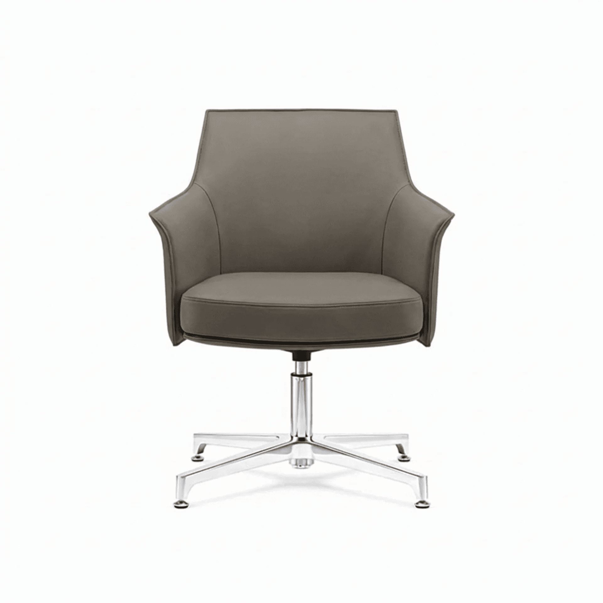 Silla tapizada en piel con base fija de cuatro puntas