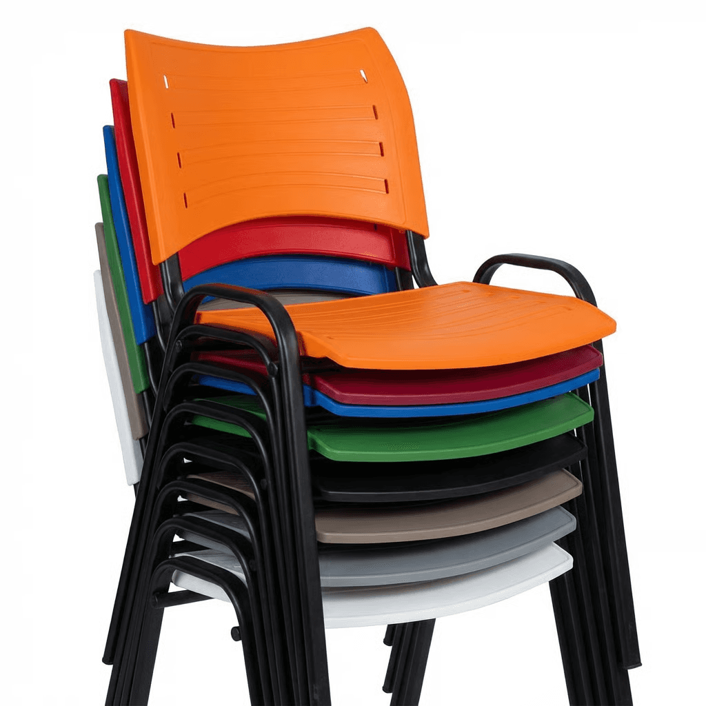 estructura: de acero tubular ovalado de 30 X 15 mm, calibre 16, con acabado de pintura epóxica (electrostática) color negro, gris cálido, gris o blanco. asiento y respaldo: en dos piezas en polipropileno de alta resistencia y duración. color: negro, gris, verde, rojo, azul, blanco, berenjena, gris cálido, naranja. resistencia: peso sugerido 120 kgs.