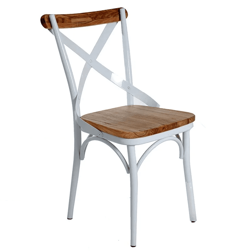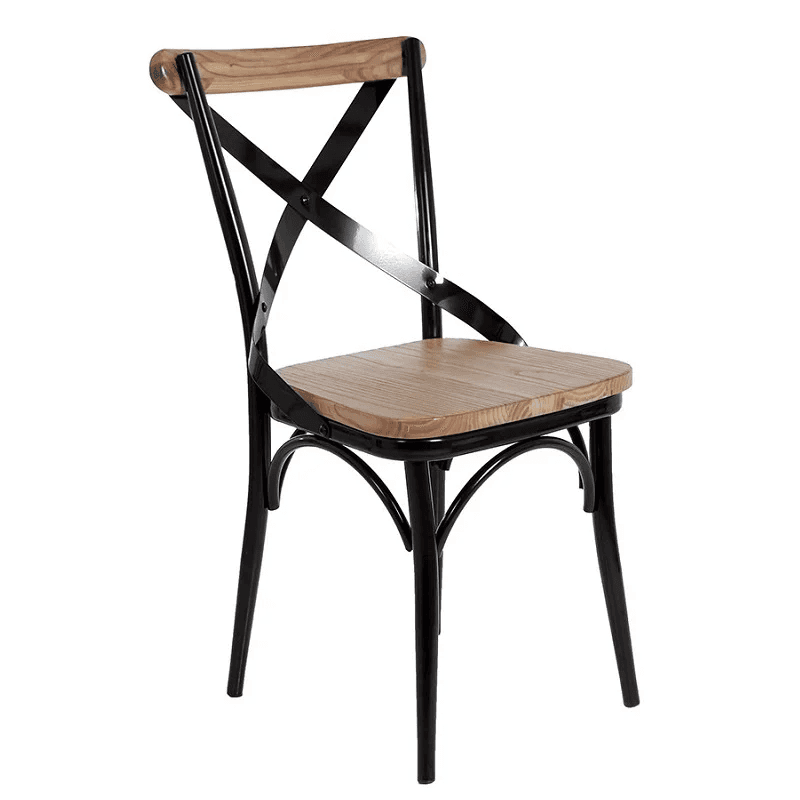 Silla Italian En Metal Con Asiento en Madera Natural