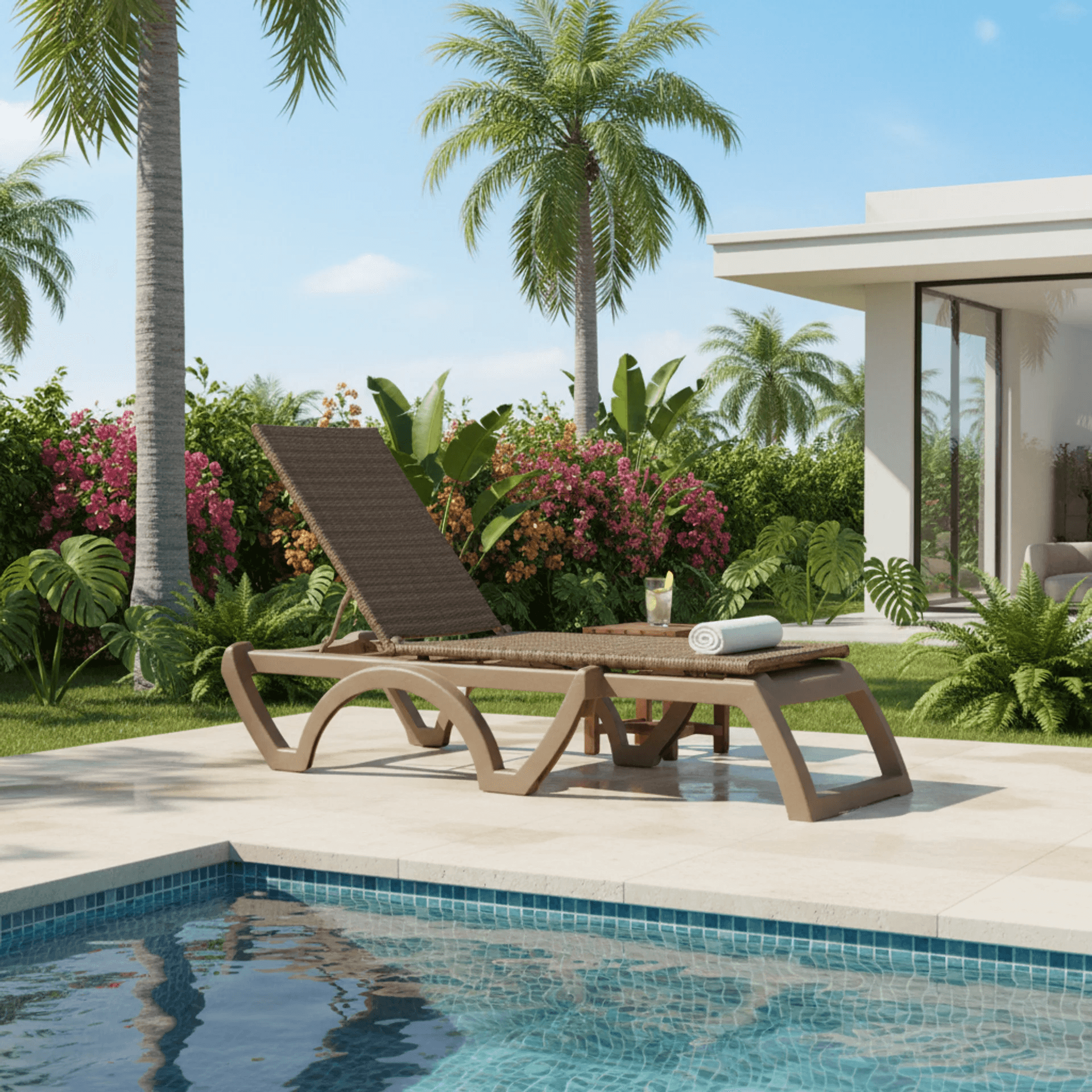 Elegante tumbona ajustable en 4 posiciones.