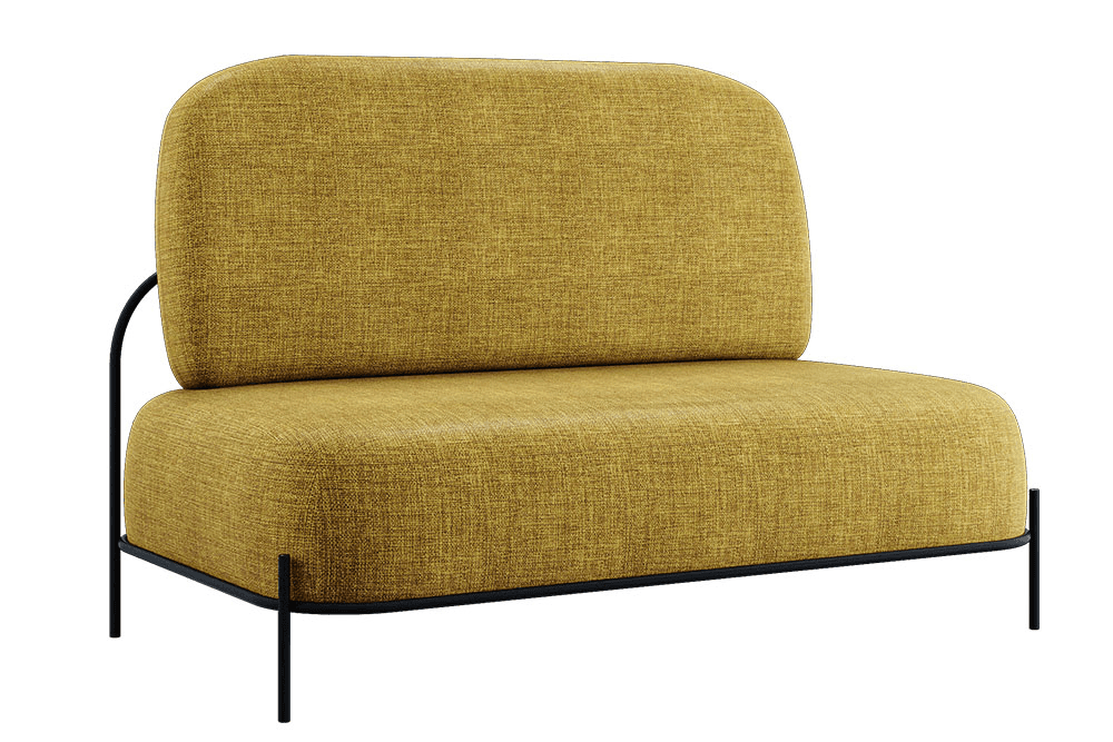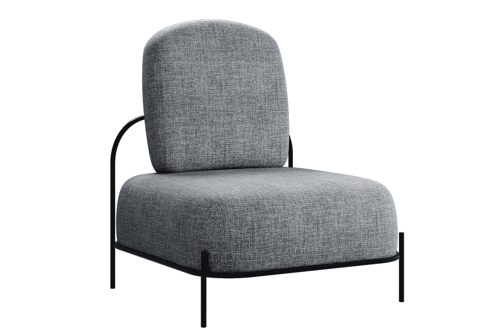 Sillón fabricado con madera de pino y hule espuma laminado flexible. Base metálica de color negro