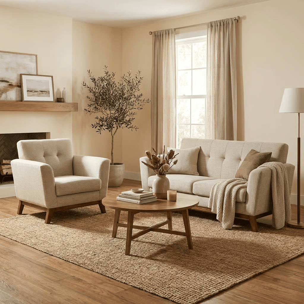 Estructura fabricada en madera de pino, diseñado para ofrecer firmeza, durabilidad y confort. Cuenta con asiento y respaldo acojinados que brindan una experiencia cómoda, además de un acabado cuidado y tapizado