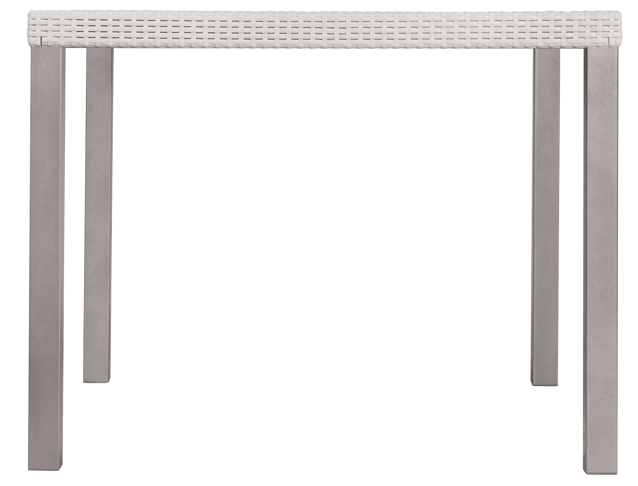 Mesa con diseño ergonómico, apta para uso en interiores y exteriores (a la intemperie). Es resistente a los rayos ultravioleta (UV) y al ambiente salino. Su terminado es en imitación rattán.