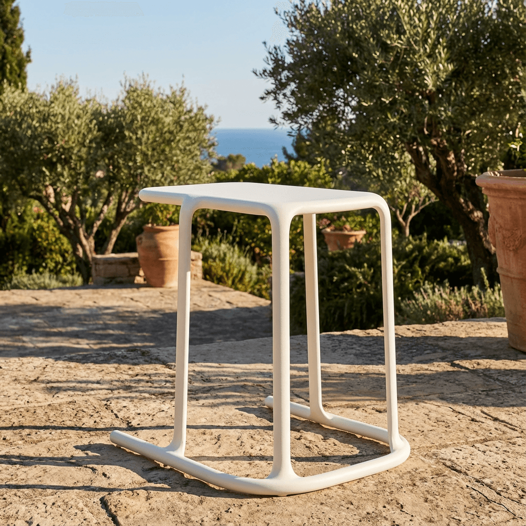 Mesa auxiliar UNO OHM-7095 para interior/exterior con material resistente a rayos ultravioleta y ambientes salinos.