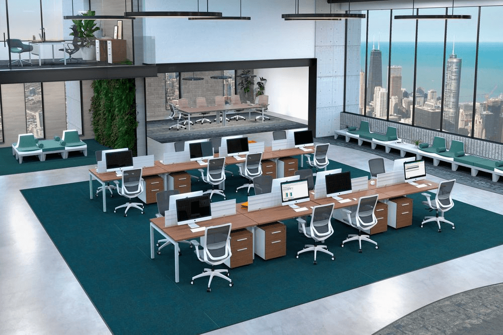 Estación de trabajo modular con estructura metálica y sistema expandible, ideal para configuraciones operativas que requieren flexibilidad y aprovechamiento del espacio.