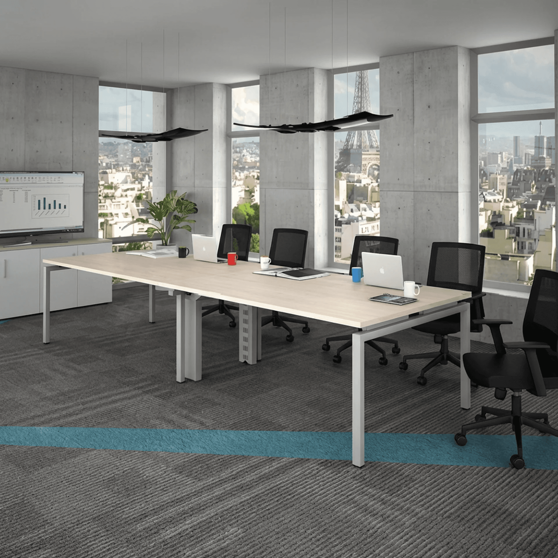 Mesa de consejo ideal para reuniones y espacios corporativos. Su diseño modular ofrece amplitud y funcionalidad, adaptándose a distintos entornos de oficina.