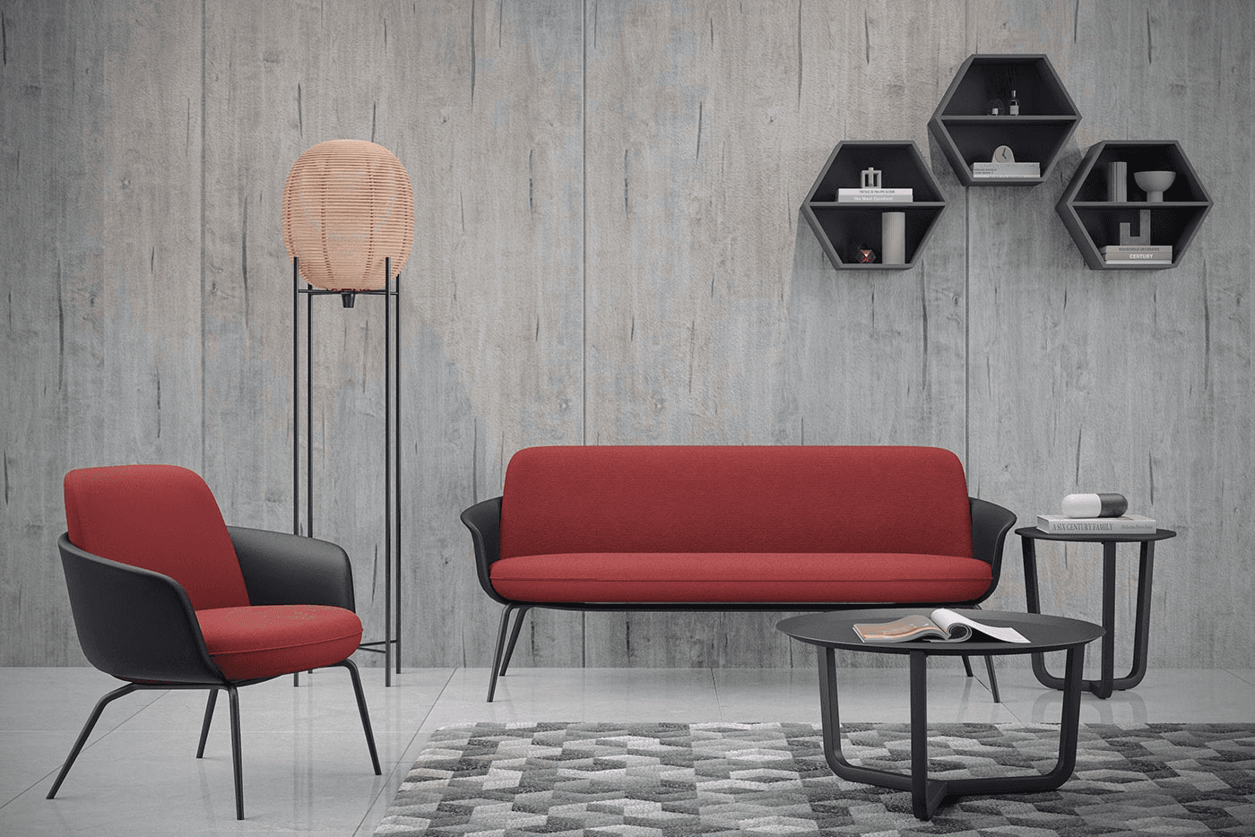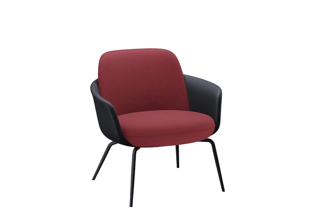 Sillón con asiento de poliuretano inyectado con estructura interna de acero y base metálica color negro.