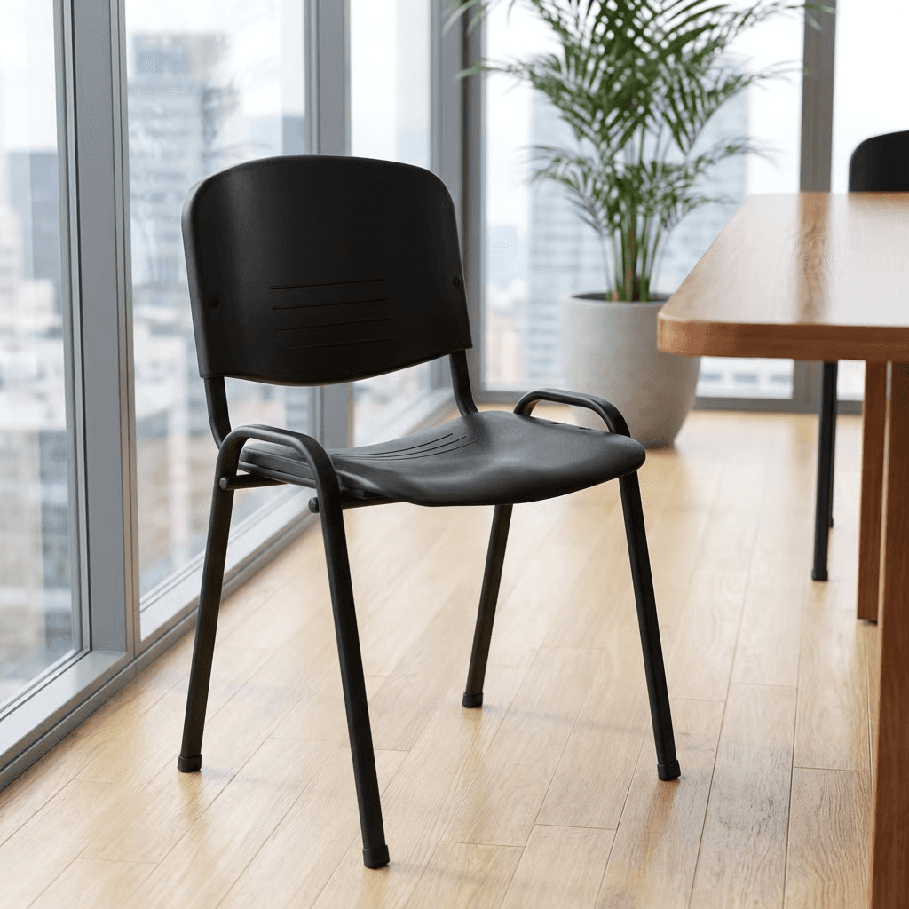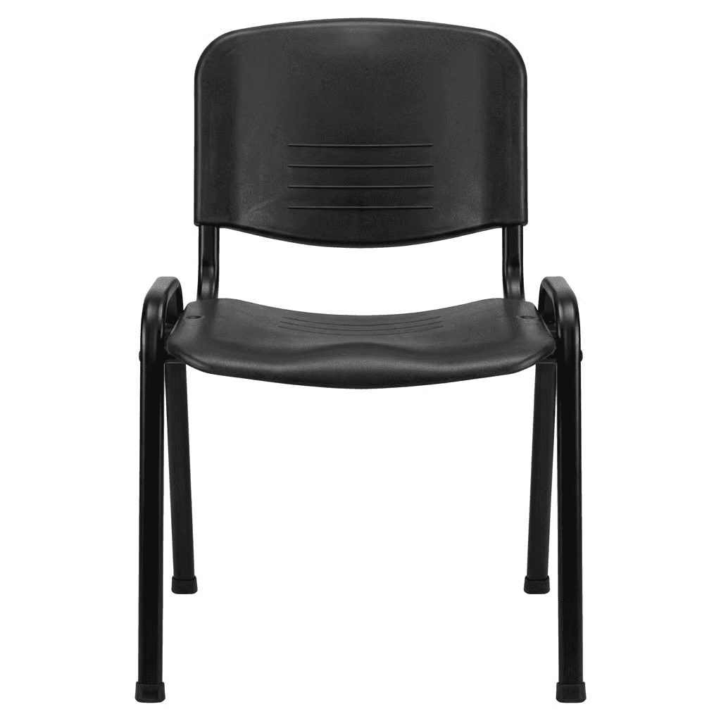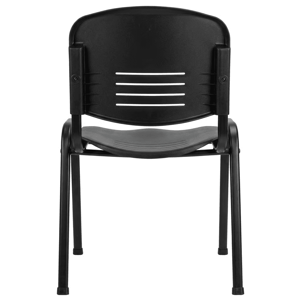 Estructura: De acero tubular ovalado de 1 1/8" X 19/32", calibre 18; con acabado de pintura epóxica (electrostática) color negro. Asiento y Respaldo: En dos piezas de polipropileno de alta resistencia y duración. Color: Negro o azul. Características: Es estibable. Resistencia: Peso sugerido 120 kgs.