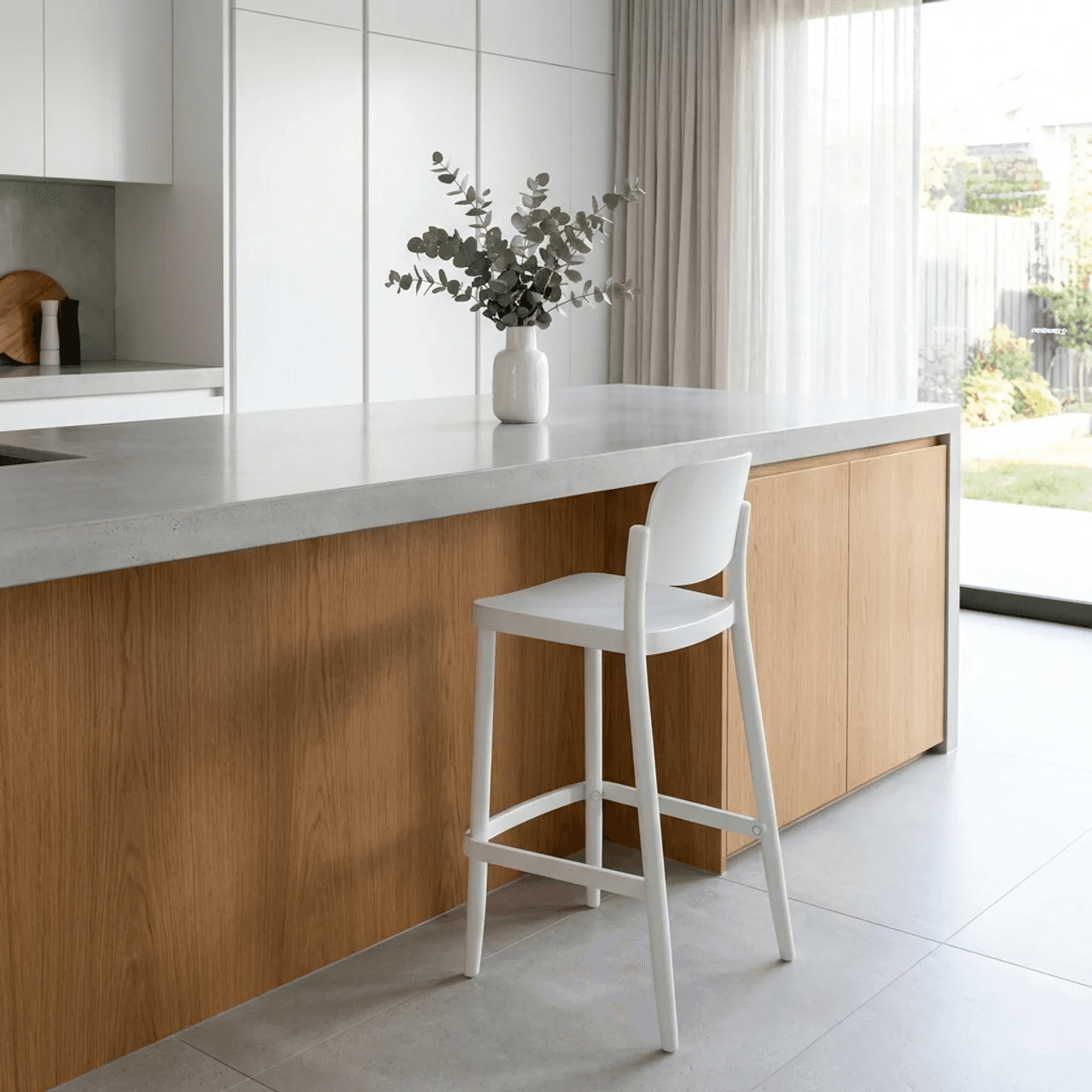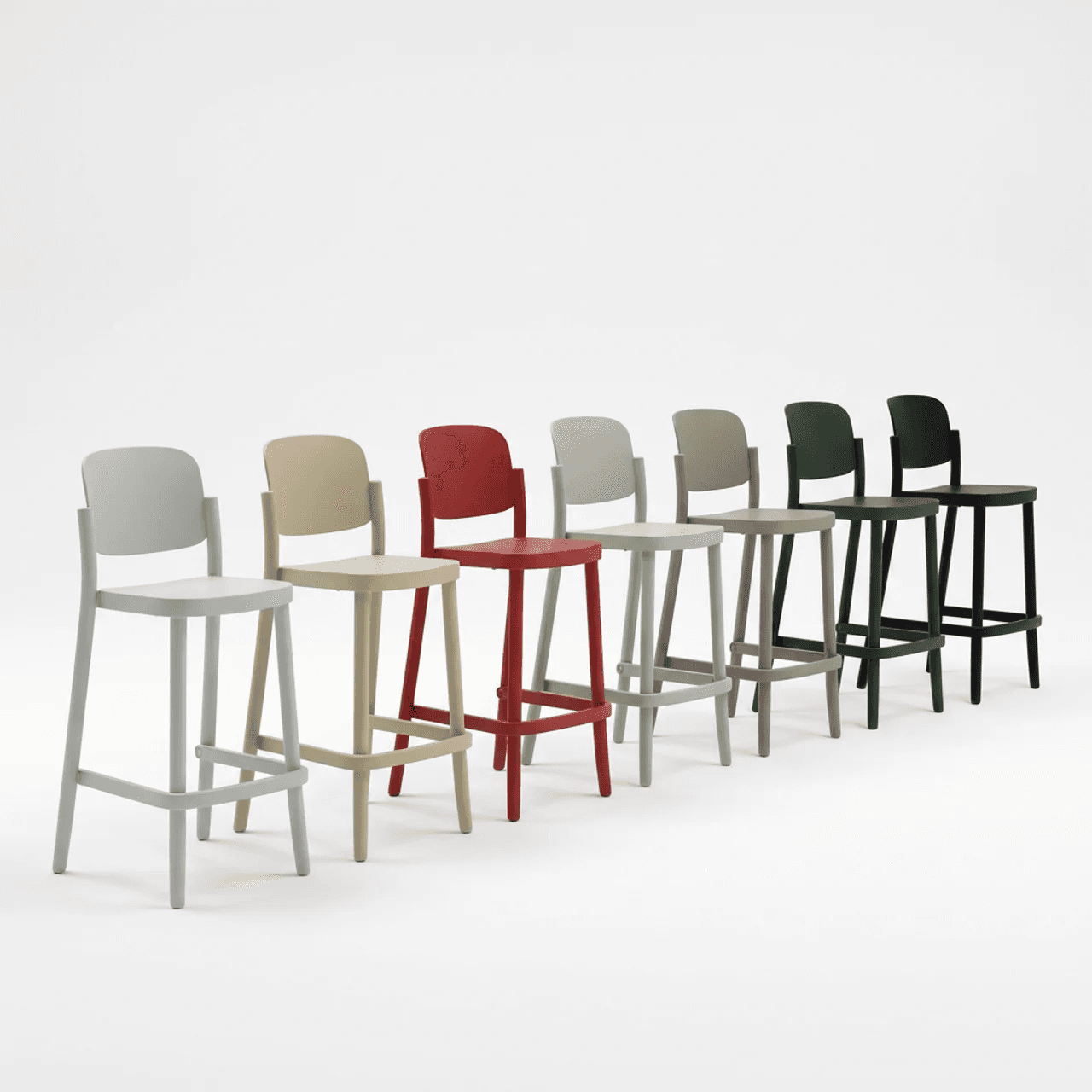 Silla monocasco de polipropileno con fibra de vidrio con 4 patas. Apilable hasta 6 unidades en el suelo y 8 en un carro.