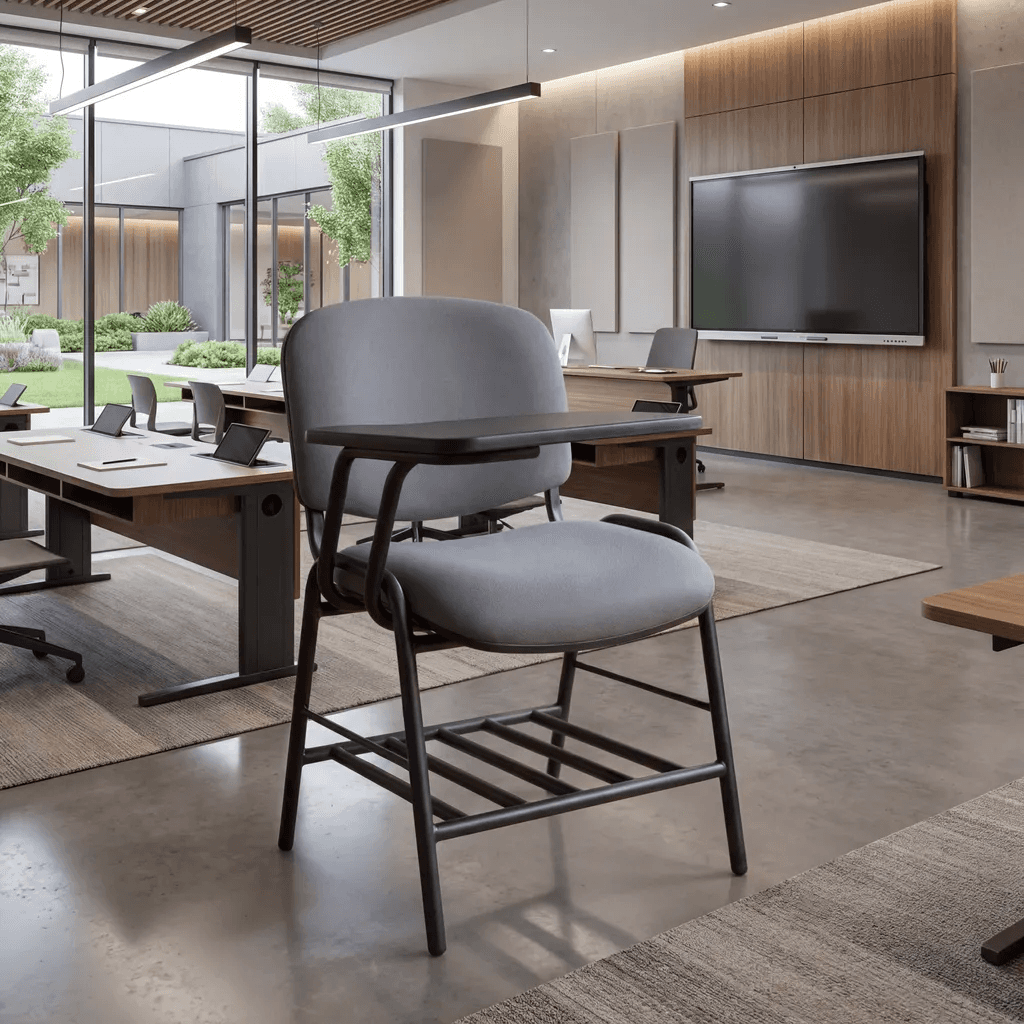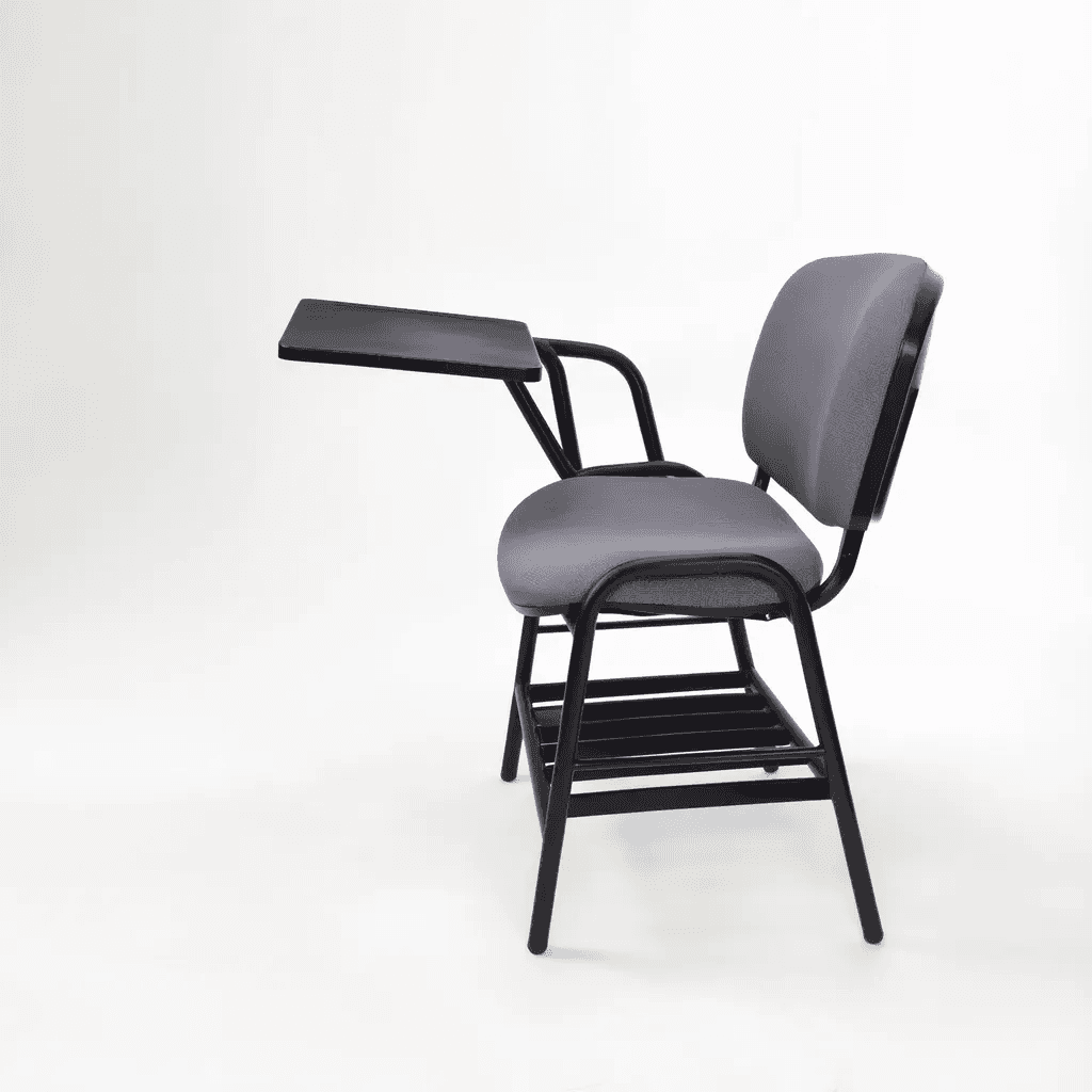 Pupitre escolar elíptico acolchado para uso intensivo en aulas.