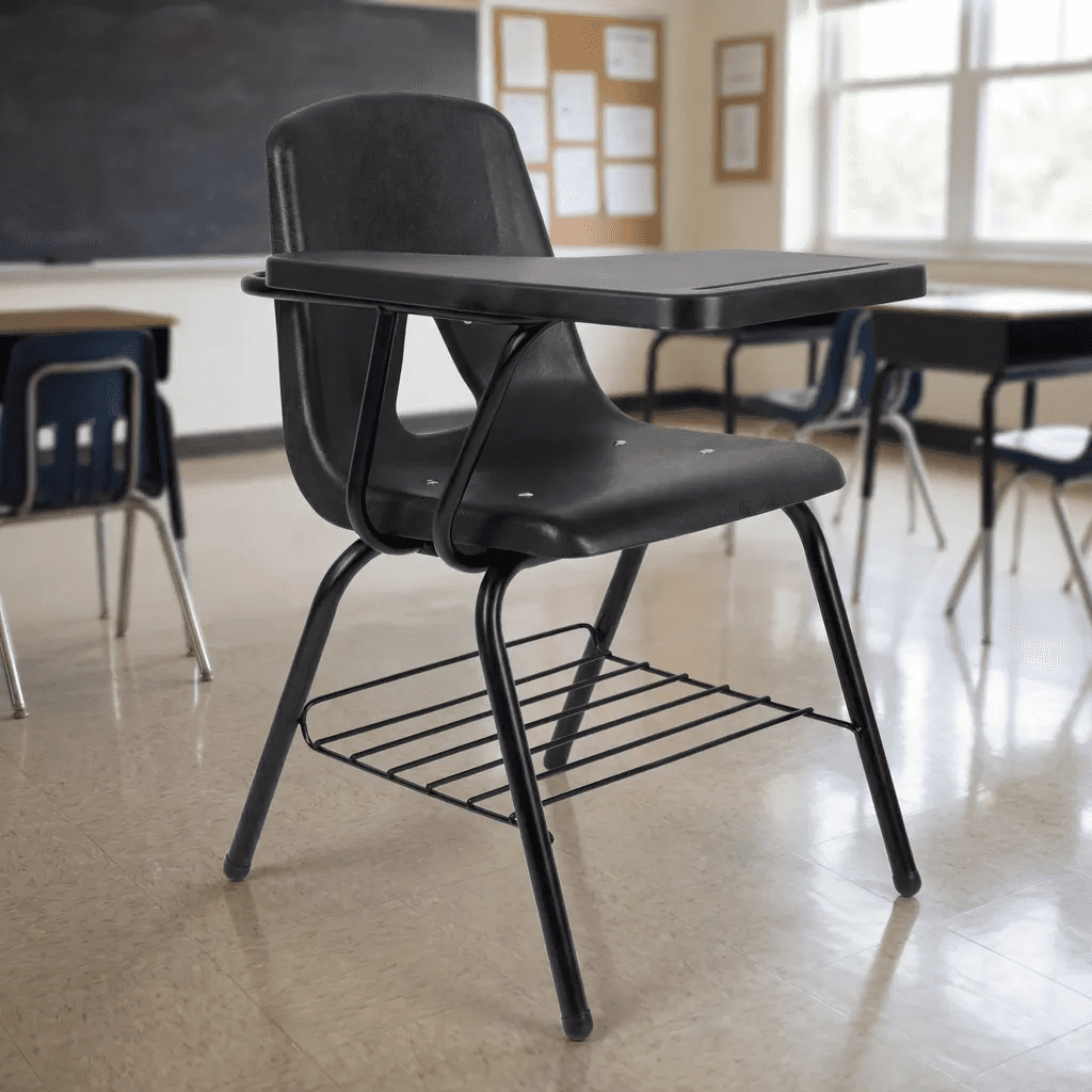 Silla ergonómica para aulas de capacitación con paleta lateral, varios colores.