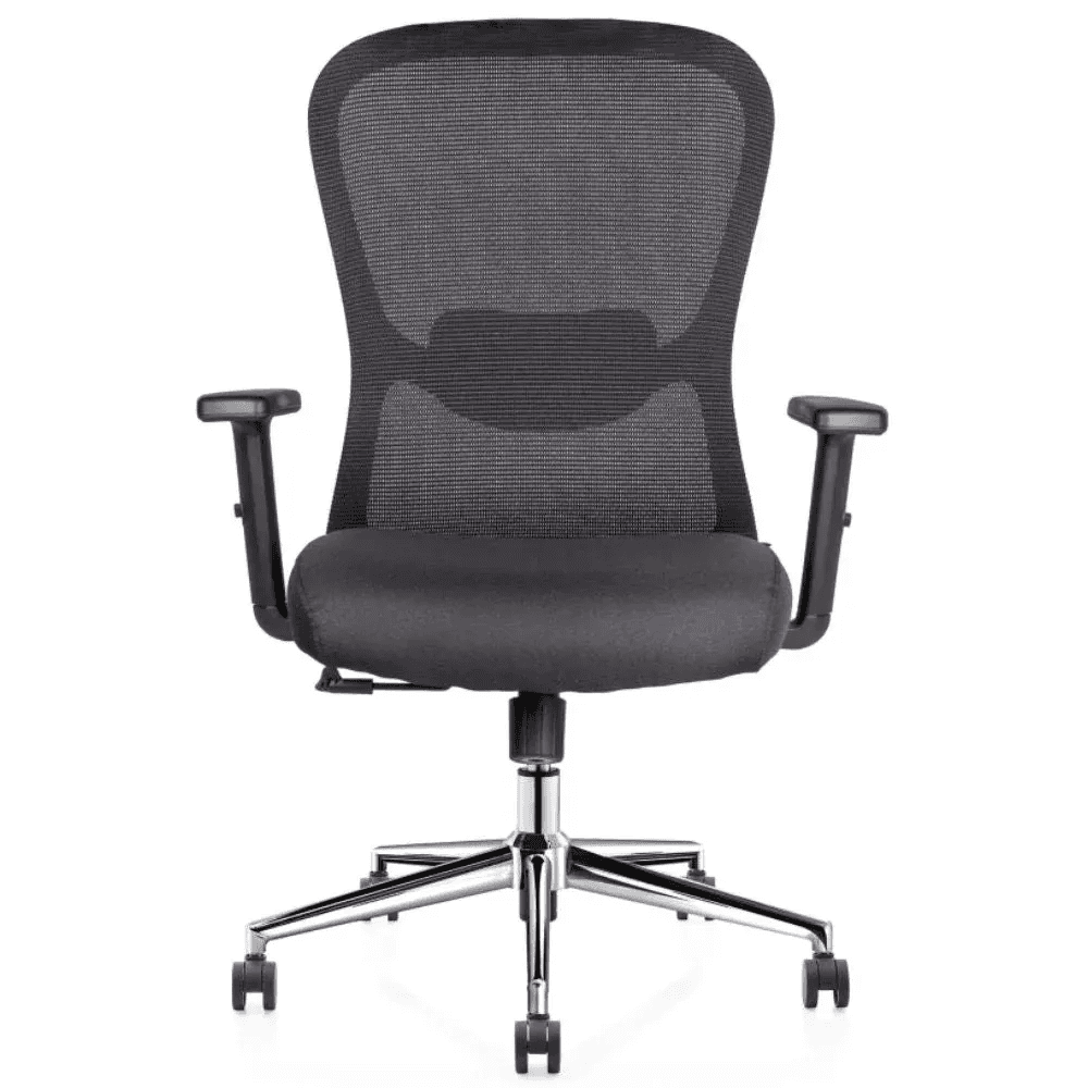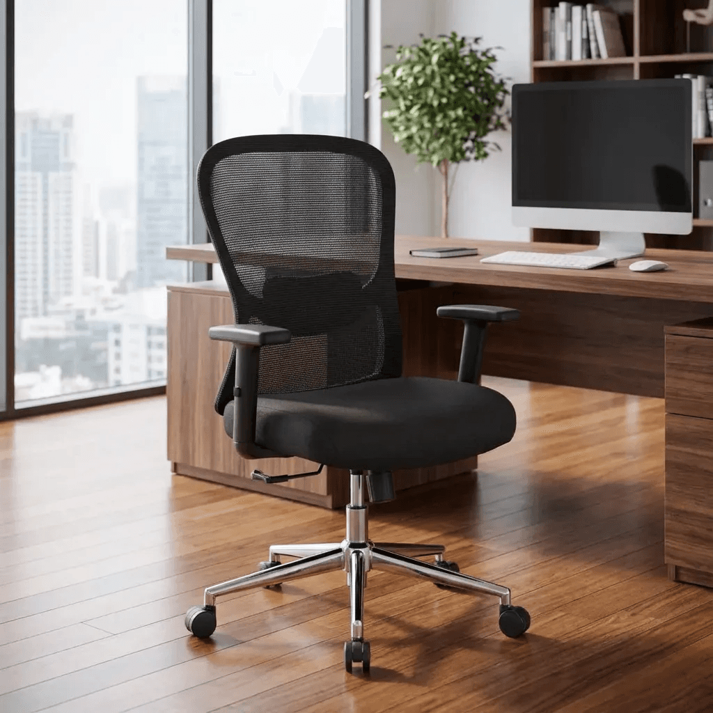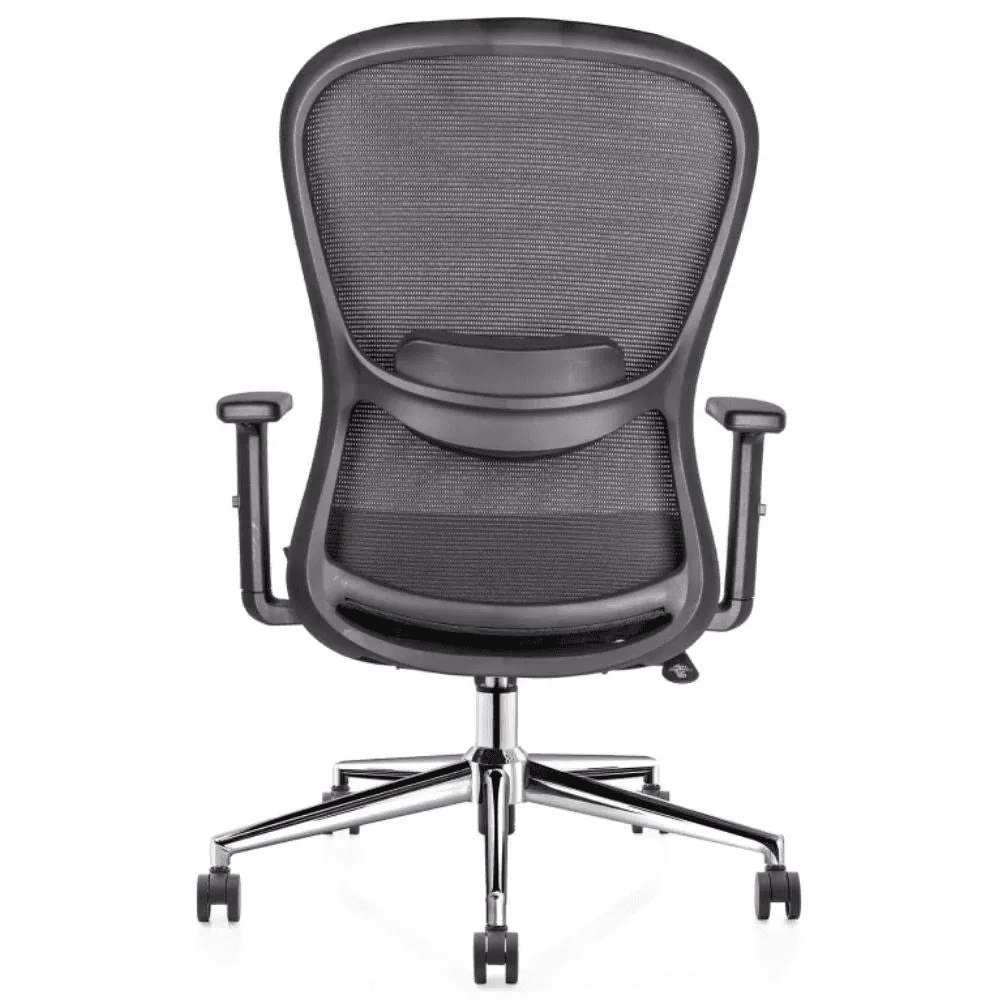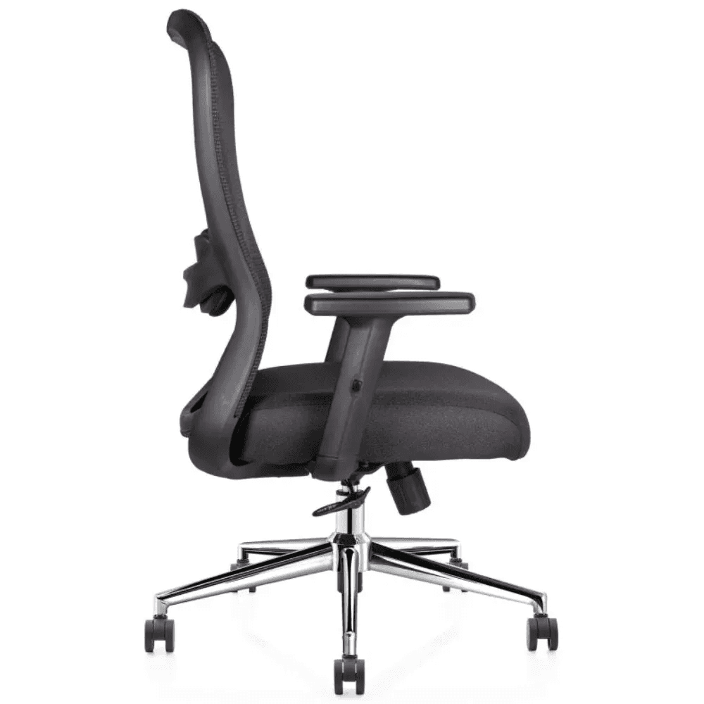 Silla ejecutiva premium con respaldo alto de malla, asiento extra grueso de 100mm y brazos con 10 posiciones de ajuste.