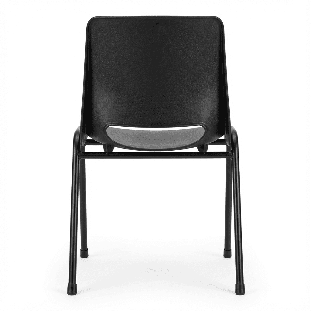 Silla para exterior Plus OHV-73 con estructura metálica tubular y respaldo en polipropileno, pensada para uso en intemperie con resistencia sugerida de 160 kg. Es una silla monocromática (mismo color en asiento y estructura) disponible en negro, blanco, rojo ladrillo, azul profundo y gris oscuro, ideal para terrazas, cafés y espacios urbanos.