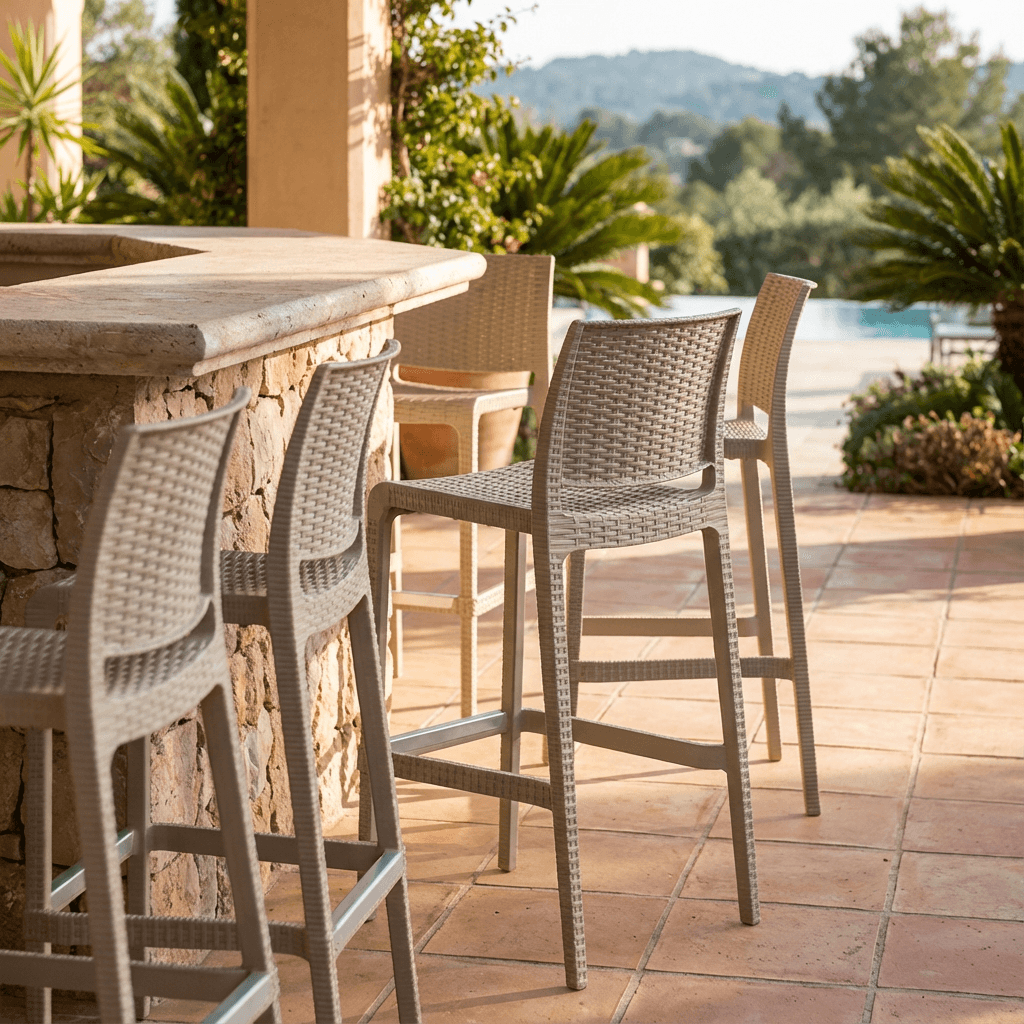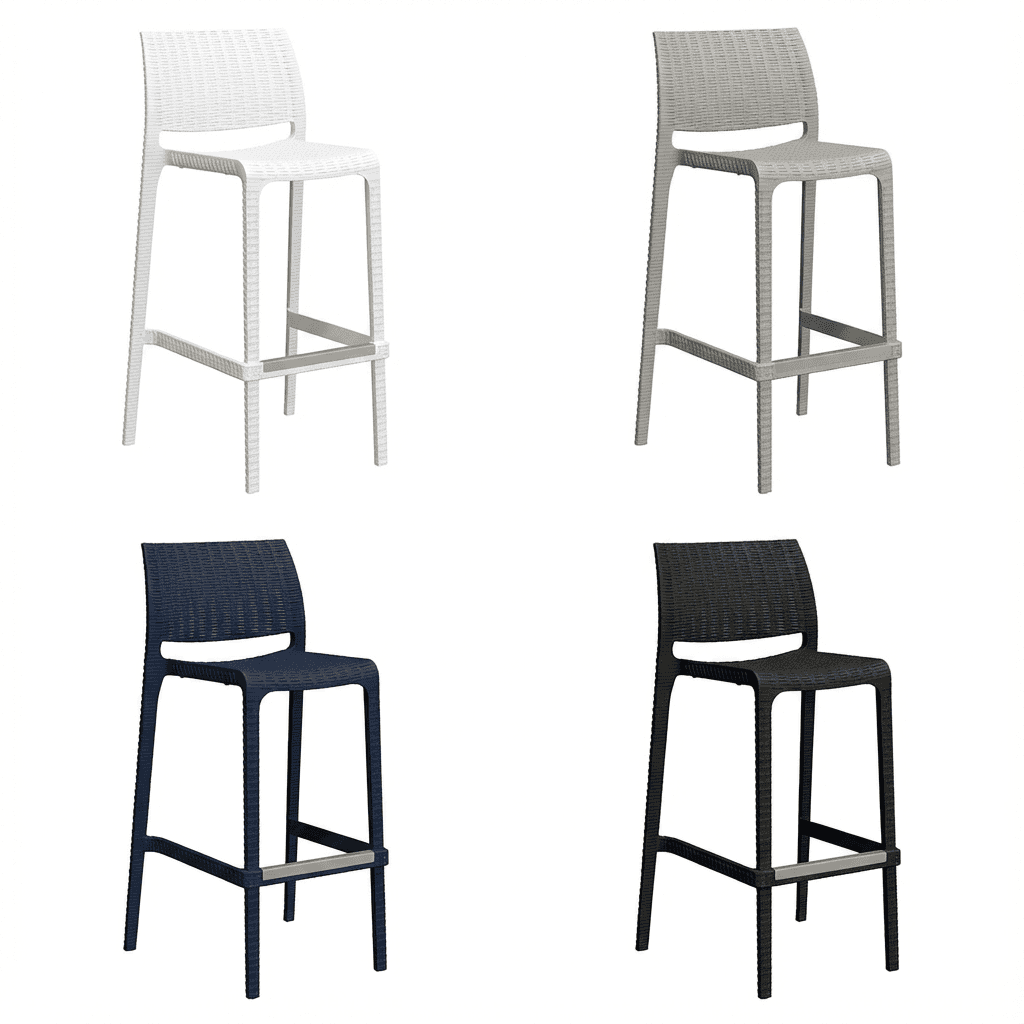 Silla monobloque para áreas exteriores, duradera y apilable.