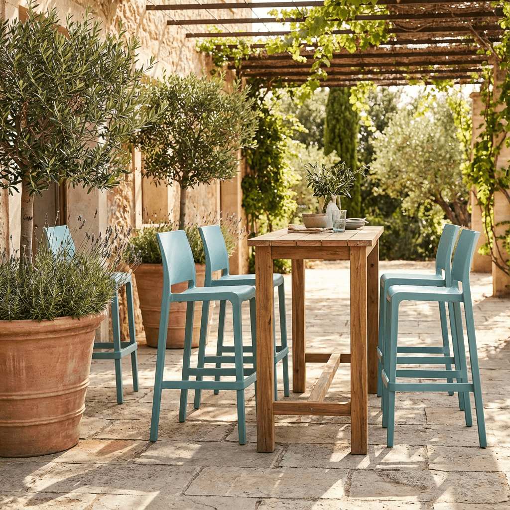 Silla monobloque de la línea Sensilla para uso exterior, fabricada en polipropileno de alta resistencia con protección UV y apta para ambientes salinos, con peso sugerido de hasta 130 kg. Ofrece amplia gama de colores y un diseño ligero y funcional, ideal para terrazas, patios, áreas recreativas y proyectos de hospitalidad.