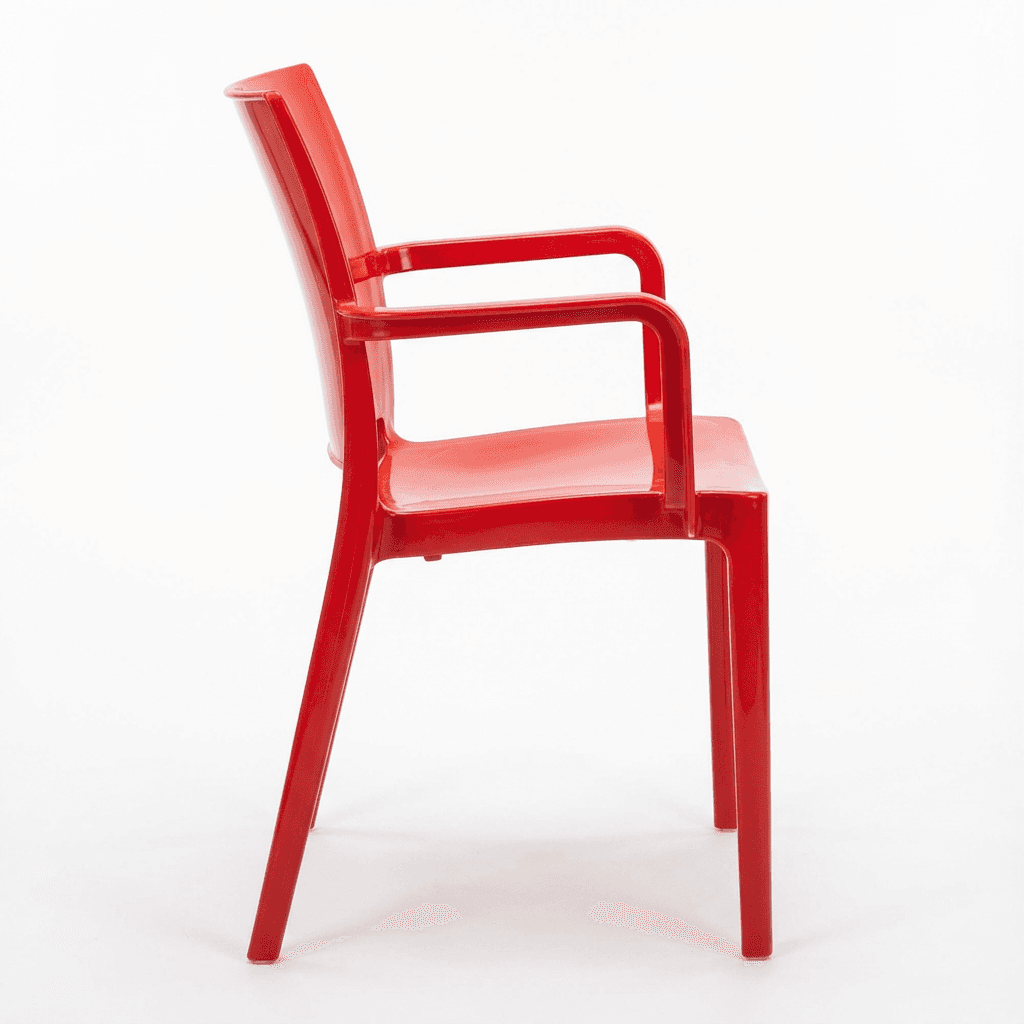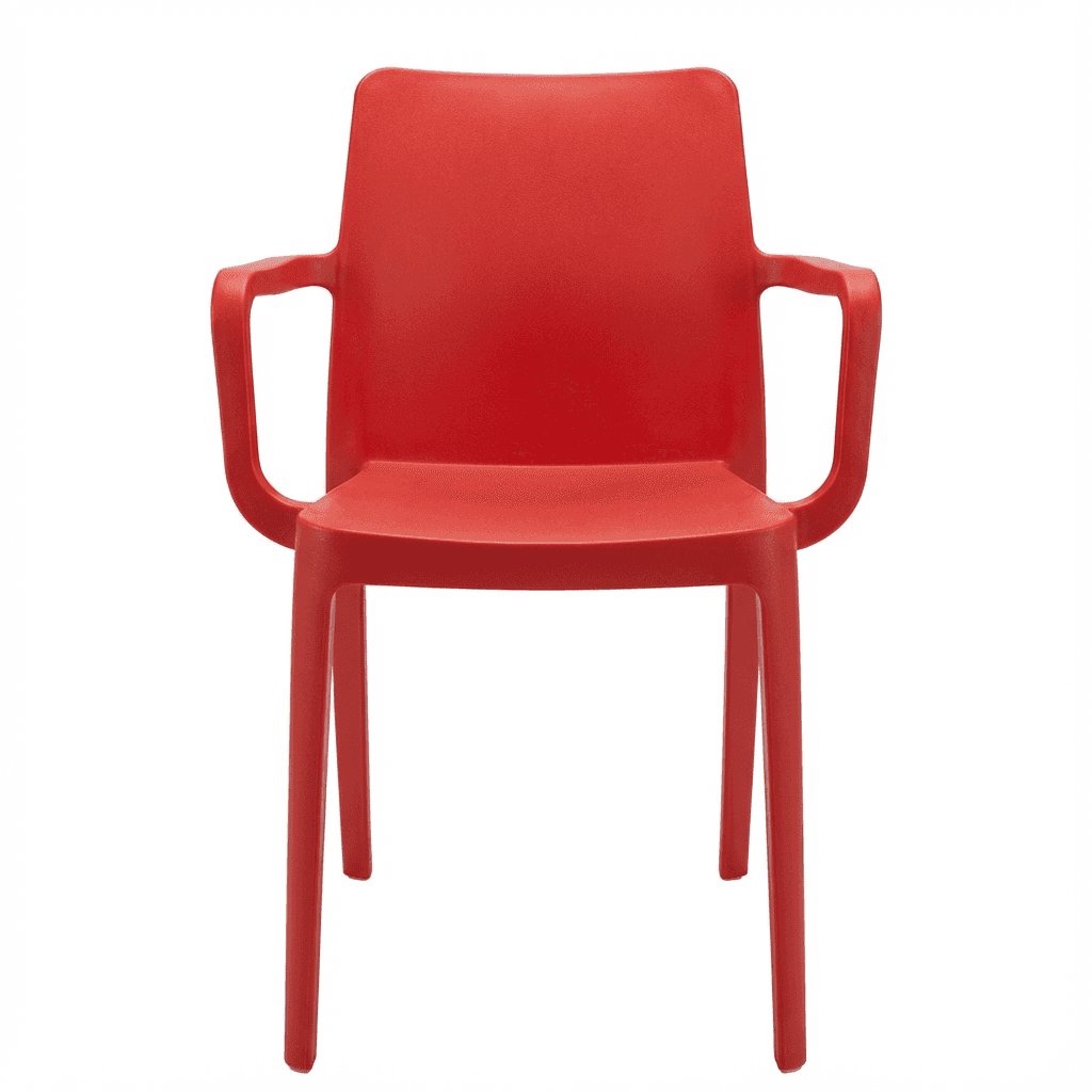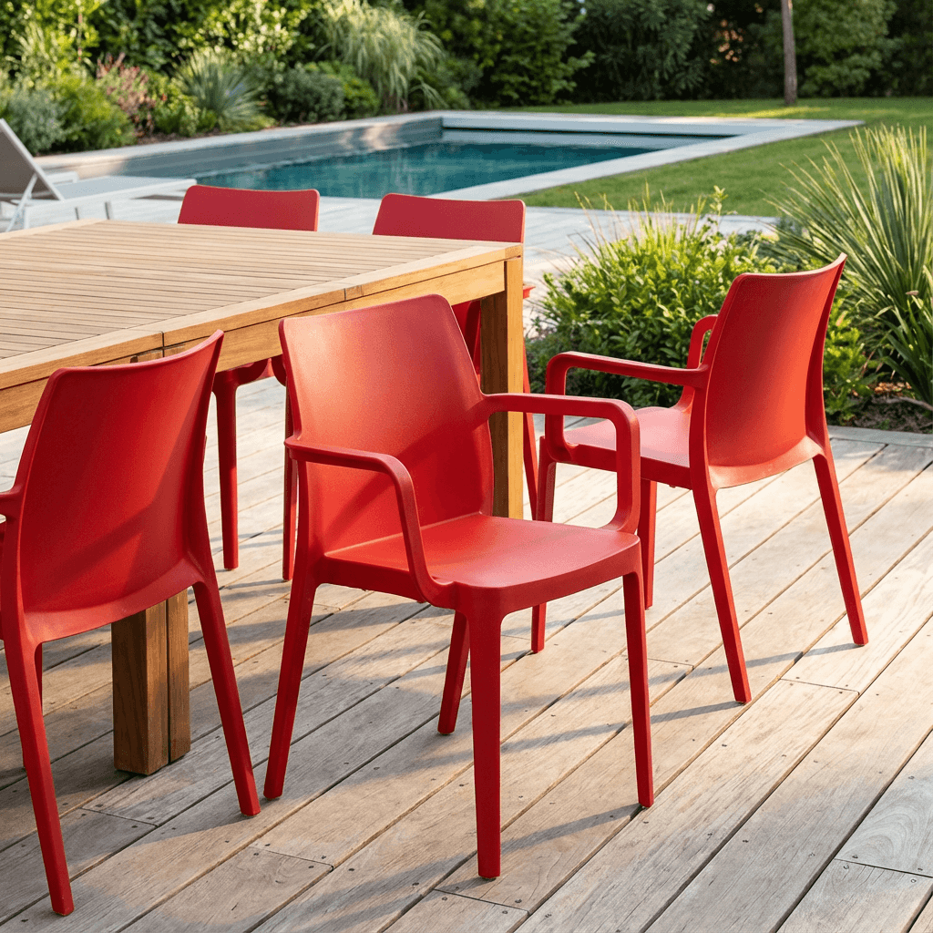 Silla de exterior SOLEI OHV-60 en polipropileno monobloque con protección UV y apta para ambiente salino, con peso sugerido de 130 kg. Se ofrece en colores blanco, capuccino, negro, gris antracita, mostaza, rojo y verde, ideal para terrazas, jardines y áreas de comedor al aire libre.