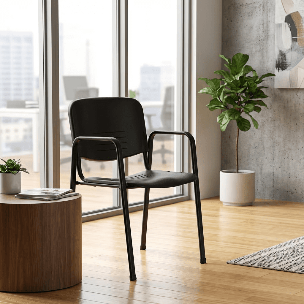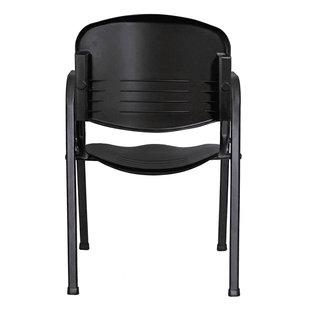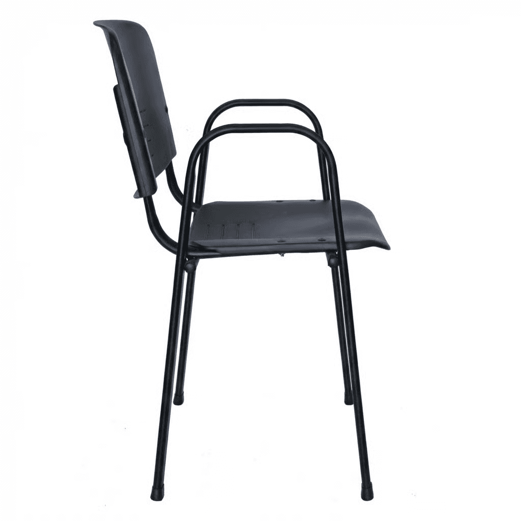 Estructura: Acero tubular ovalado de 1 1/8" X 19/32", calibre 18, con pintura epóxica (electrostática) color negro. Los brazos son una extensión de las patas. Asiento y Respaldo: Dos piezas en polipropileno de alta resistencia y duración. Colores disponibles: Negro o azul.