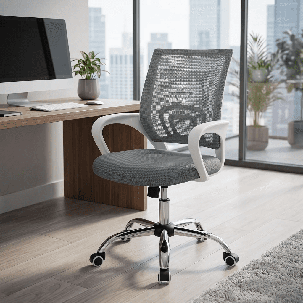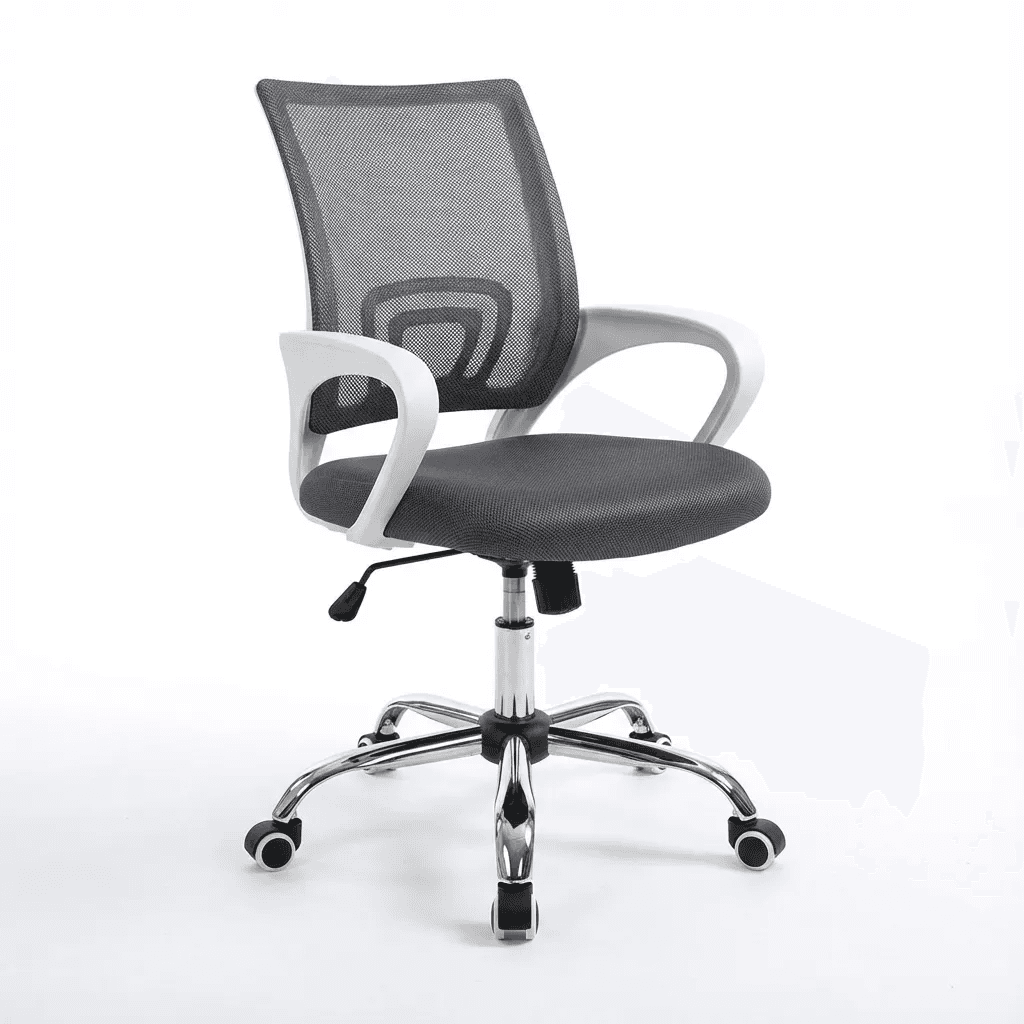 Silla operativa ergonométrica con respaldo en malla y asiento acolchonado, mecanismo reclinable con bloqueo y ajuste de altura por pistón neumático; ideal para oficinas o uso residencial ligero.