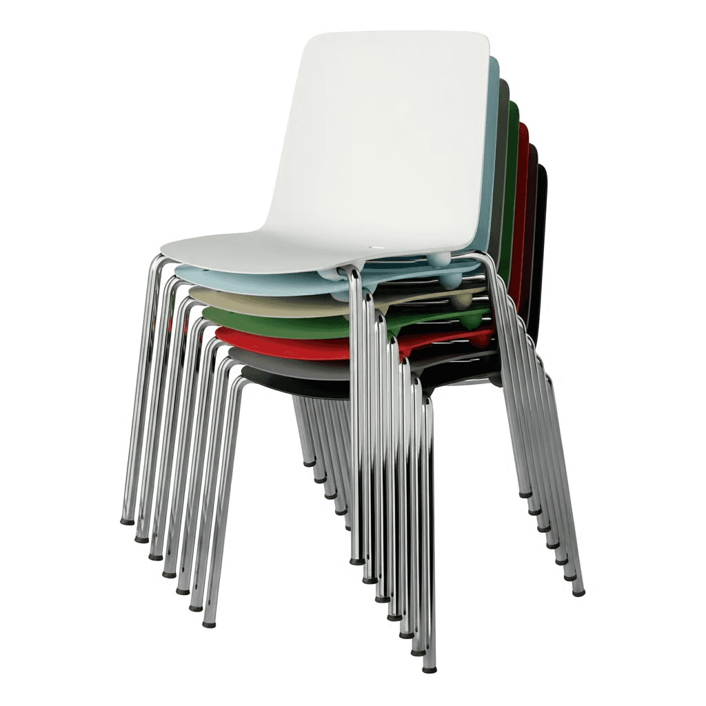 Opción de cojín de asiento disponible. Apilable hasta 6 unidades en el suelo y 8 en un c
