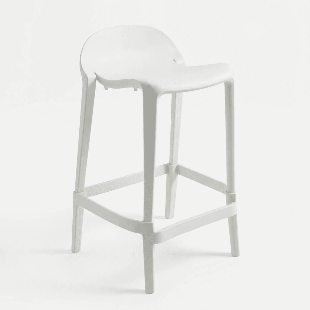 Silla para visitantes de exterior Joyous modelo OHV-82, fabricada en dos piezas de polipropileno de alta resistencia con aditivo UV y apta para ambiente salino, con peso sugerido de 130 kg. Sus opciones de color (blanco, grises, menta, salmón y ámbar) facilitan integrarla en proyectos de hospitalidad y espacios recreativos al aire libre.
