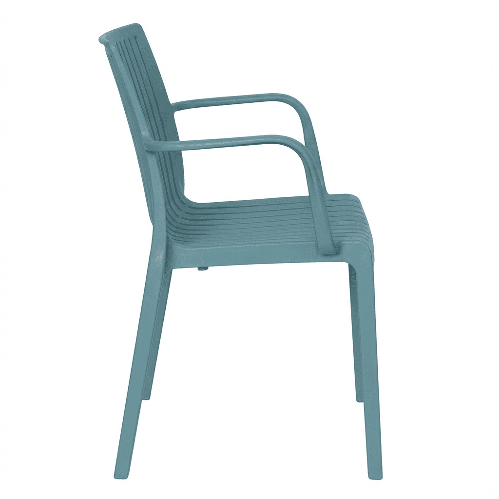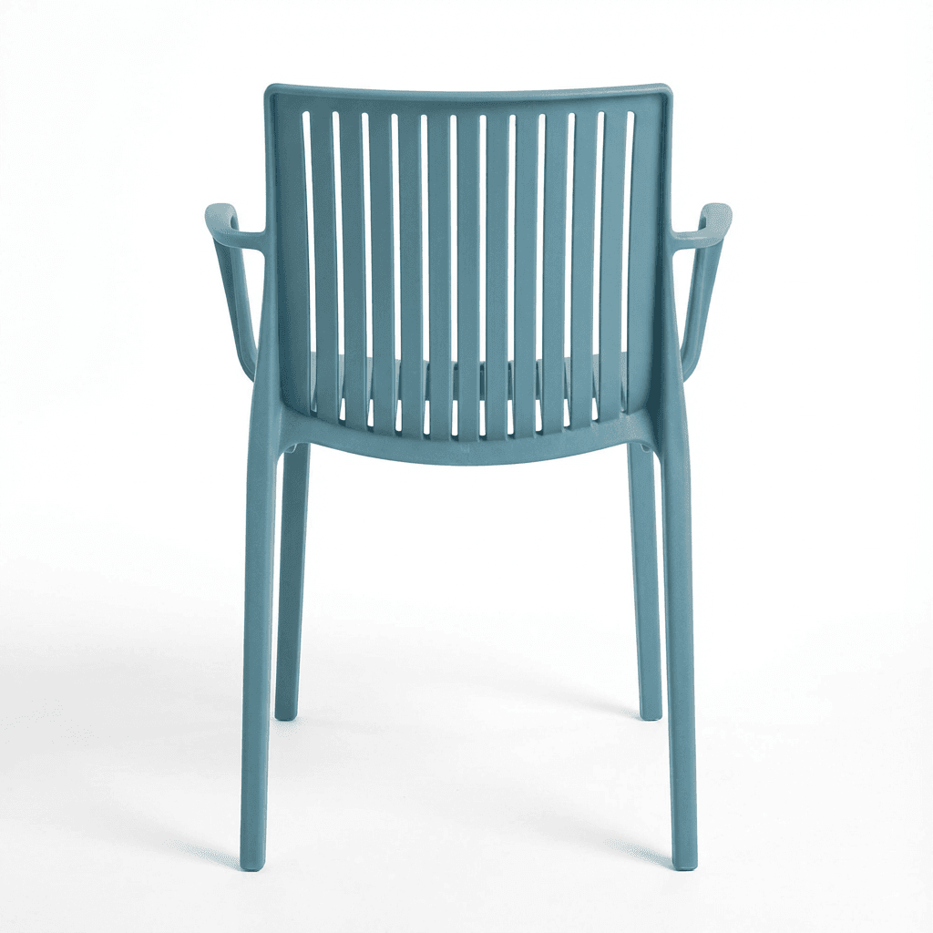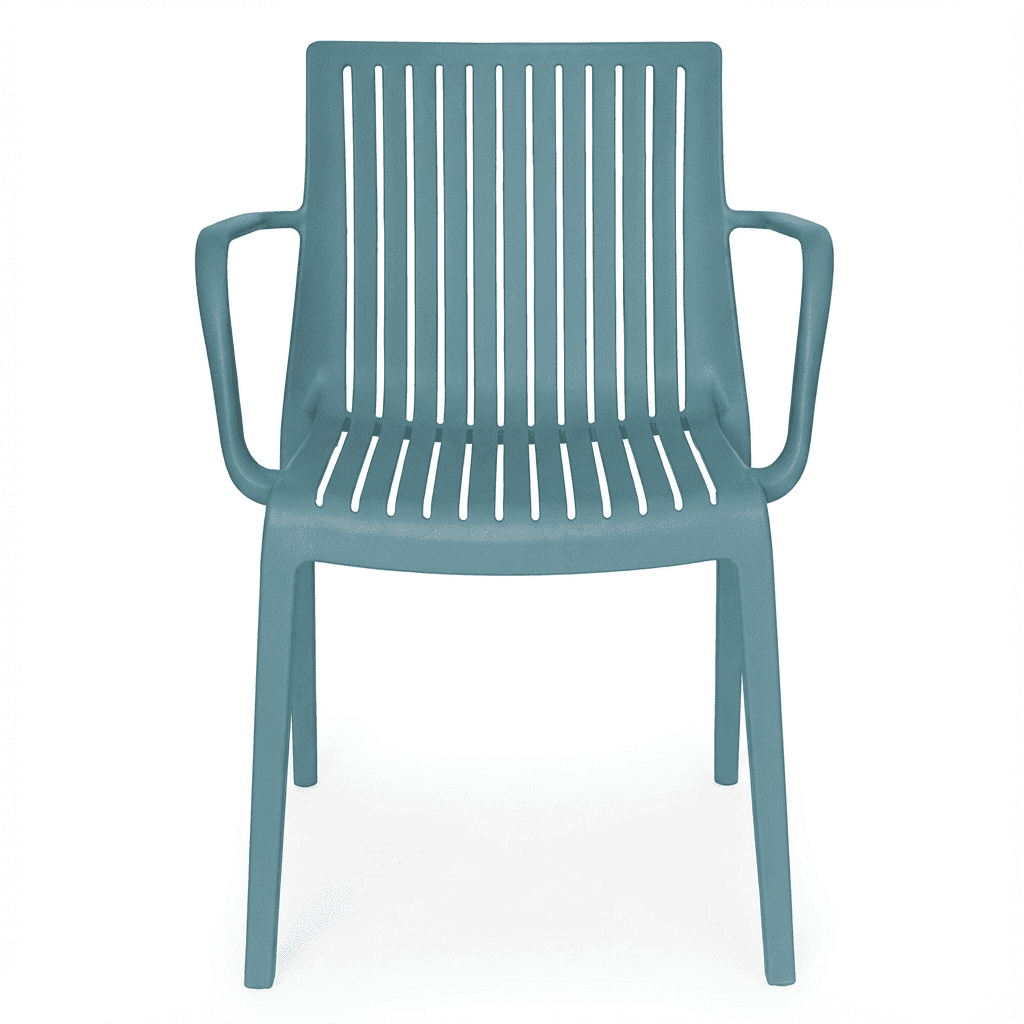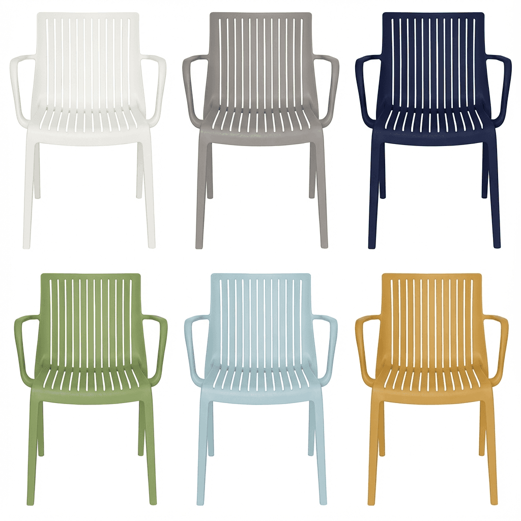 Silla para visitantes de exterior de la familia Milos, ideal para jardines, terrazas y zonas de descanso que requieren un mobiliario práctico y resistente. Su cuerpo monobloque en polipropileno con protección UV ofrece larga vida útil en exteriores y permite una limpieza rápida y sencilla.