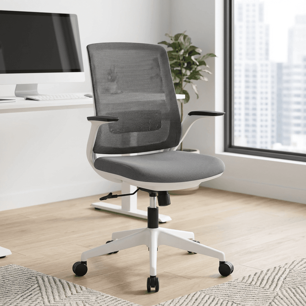 Silla operativa con respaldo en malla y asiento acolchado, ideal para uso diario en oficinas con diseño ergonómico y ajuste de altura.