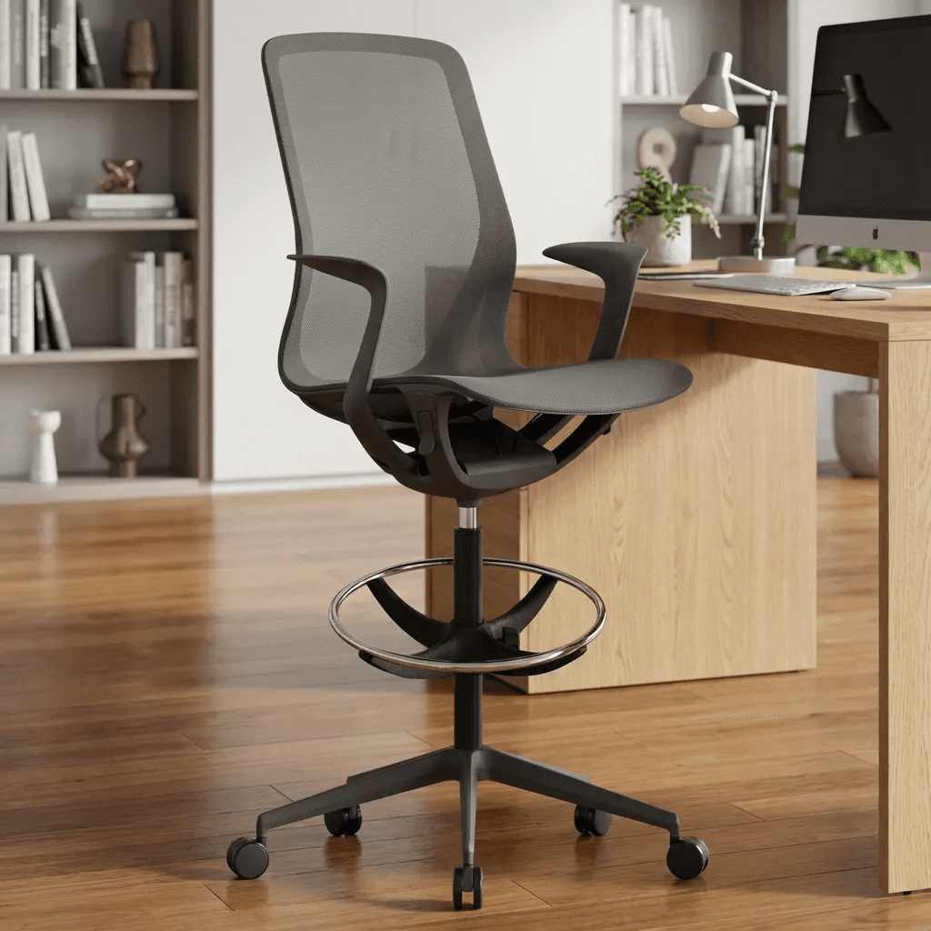 Sillón ejecutivo NET OHE-503 con diseño ergonómico, respaldo y asiento en malla gris, base de poliamida y estilo moderno para oficina o home office.