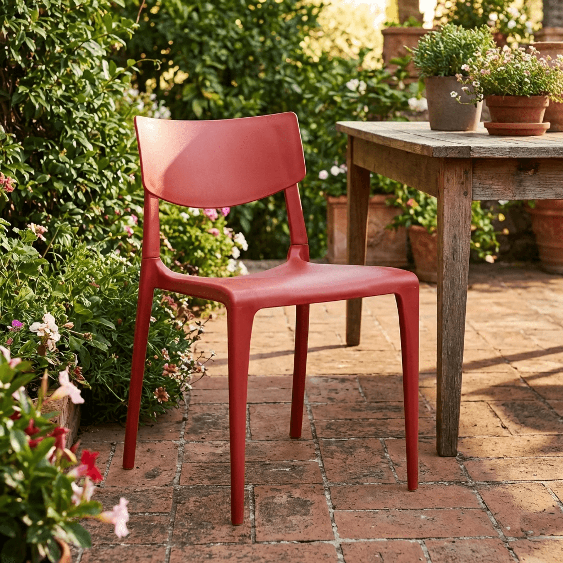 Silla con/sin brazos apilable para uso exterior e interior. Polipropileno reforzado con fibra de vidrio. Inyección por gas. Tacos antideslizantes. 100% reciclable. Anti UV. Muy fácil de lavar y desinfectar. Producto de uso público y doméstico.
