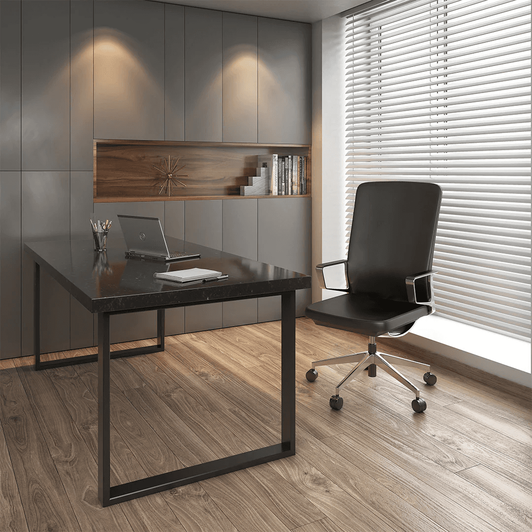 Base de aluminio fija de 4 puntas en color negro.Mecanismo giratorio con ajuste de altura.